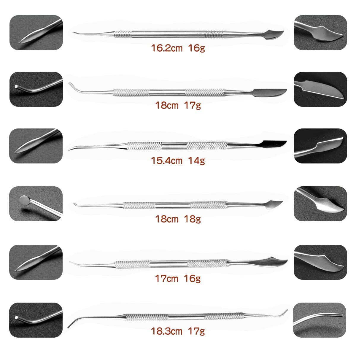 【パッケージ内容】ヘラ*10、収納ケース(長さ20.3cm×幅8.5cm×厚み2.5cm)*1。