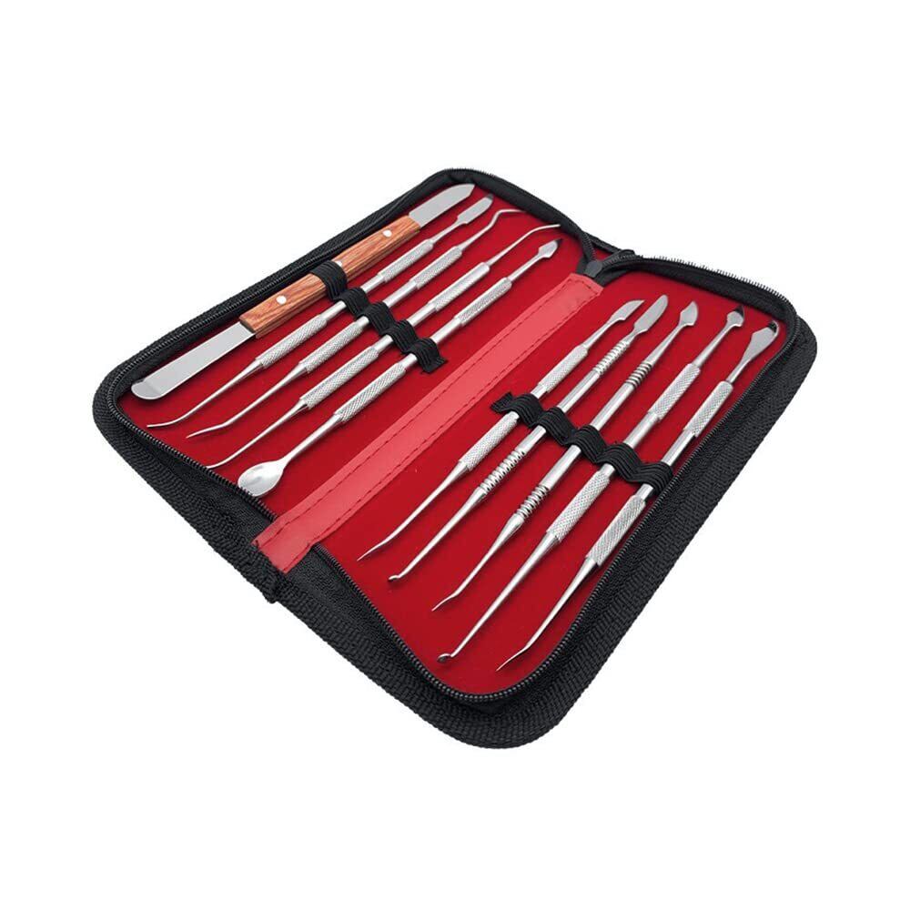 スパチュラ ツールセット 10本セット 篆刻刀 ヘラ ステンレス製 粘土 造形 陶芸 模型 細工 フィギュア 樹脂粘土 彫刻 パテ へら クラフト 工具 道具 セット 収納ケース付き
