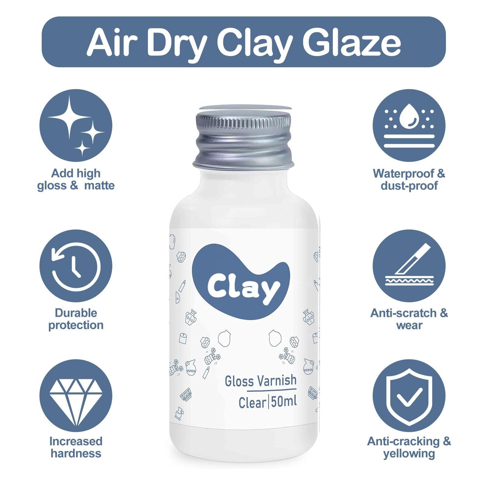 空気乾燥粘土用釉薬、50ml 空気乾燥粘土用粘土ワニス、工芸陶器用透明ワニス、防水・光沢仕上げ (マットワニス)