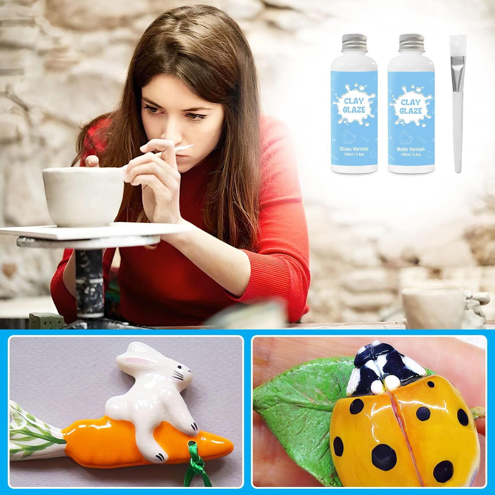 【特価商品】2 x 100ml エアドライクレイ釉薬,エアドライクレイ用シーラント,エアドライクレイワニスは粘土のひび割れ、傷、磨耗を防ぐだけでなく、光沢のある釉薬効果(グロス+マット)を持つことができます。