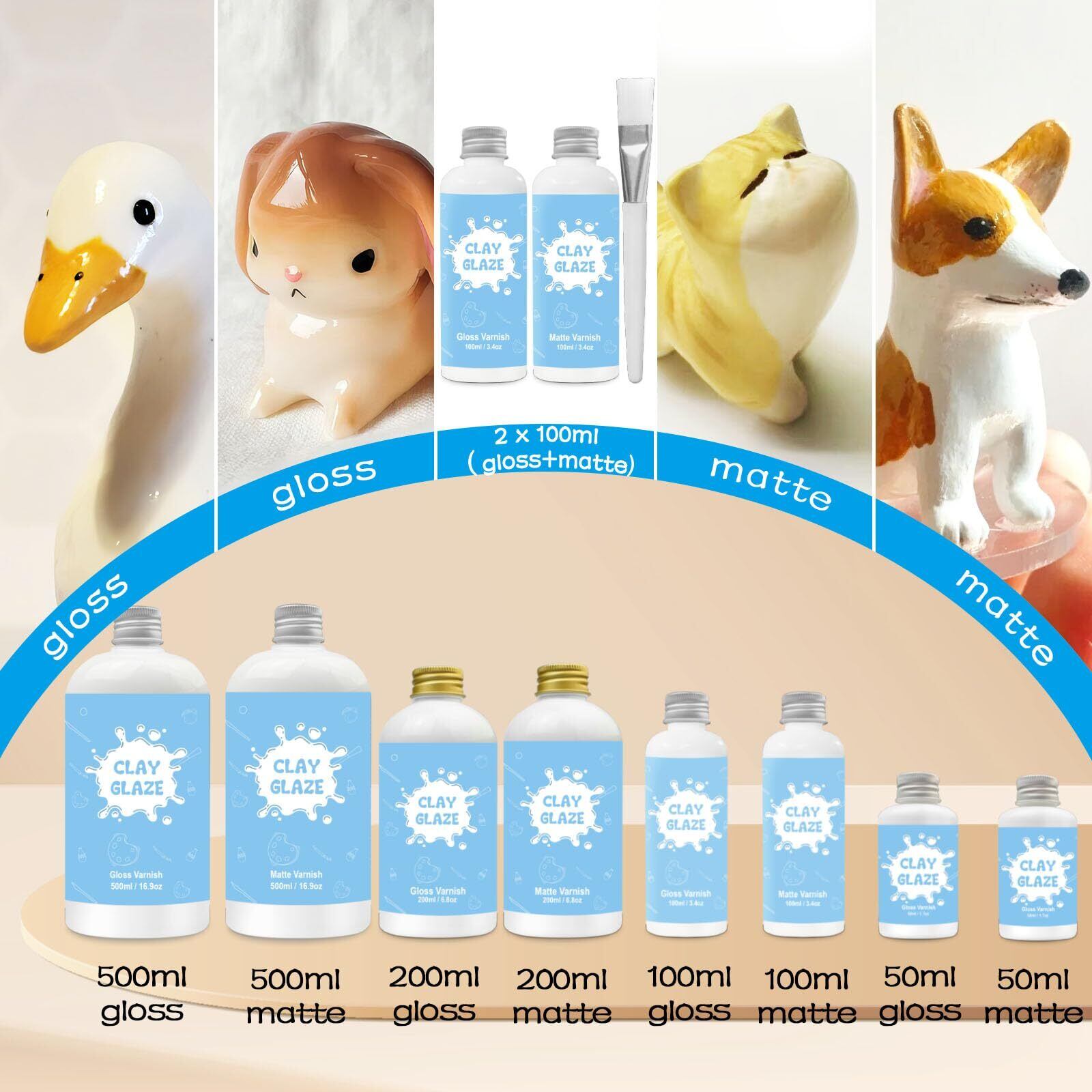 2 x 100ml エアドライクレイ釉薬,エアドライクレイ用シーラント,エアドライクレイワニスは粘土のひび割れ、傷、磨耗を防ぐだけでなく、光沢のある釉薬効果(グロス+マット)を持つことができます。