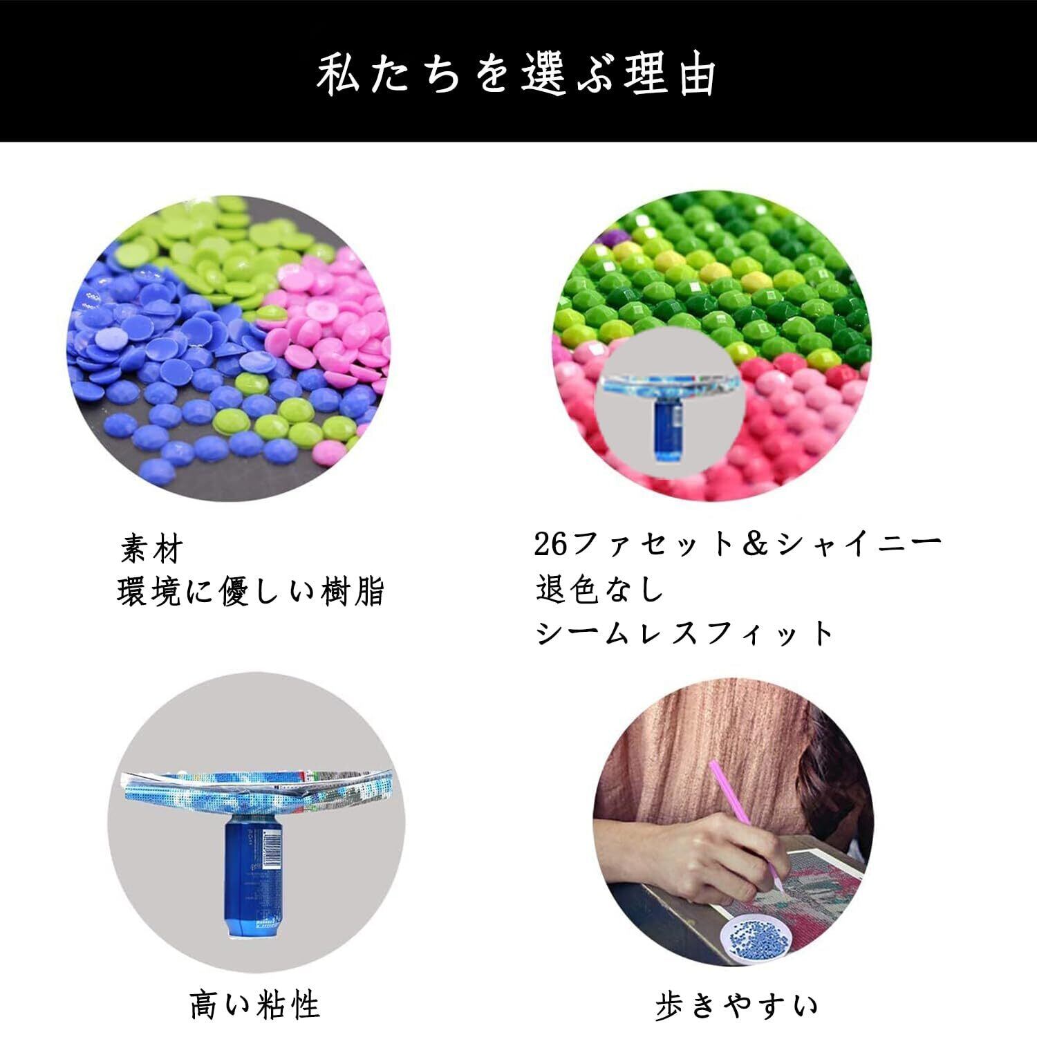 輝くダイヤモンド: 樹脂製の高品質のラウンド ダイヤモンドには26のファセットがあり、立体感が強く、美しく人目を引く。完璧な色合わせと相まって、ダイヤモンドの絵全体が、風景たちの生き生きとした絵になります。ダイヤモンドは長期保存が可能で、色あせることはありません