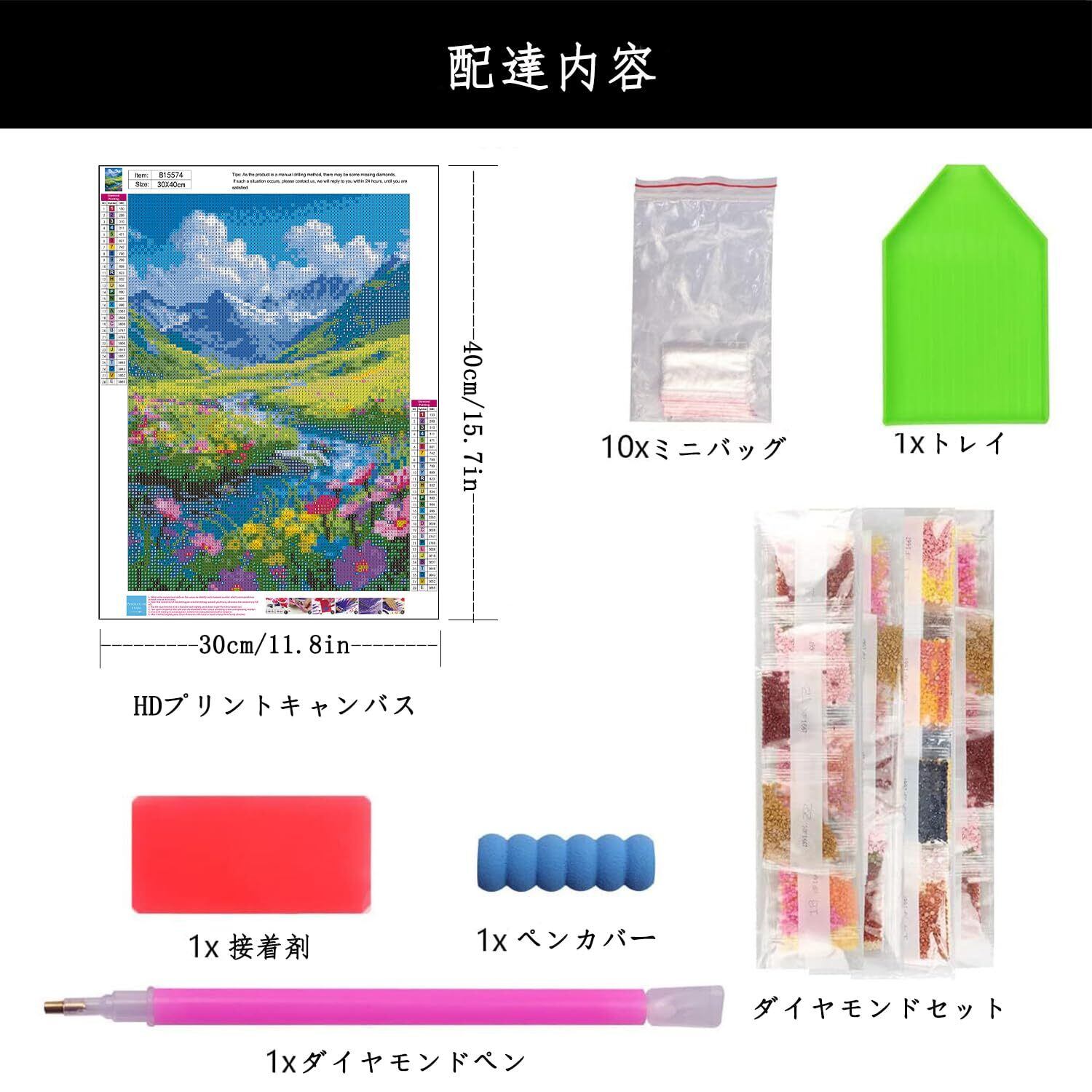 ダイヤモンドアートセット内容: ダイヤモンドペイントアクセサリーとツールは、必要なものがすべて揃っています。30cmx40cmの高精細キャンバス、2x4cmグルー、30%ダイヤモンドアートラウンドビーズ、1xトレイ、1xペン先、10xミニポーチ、1xペンケース