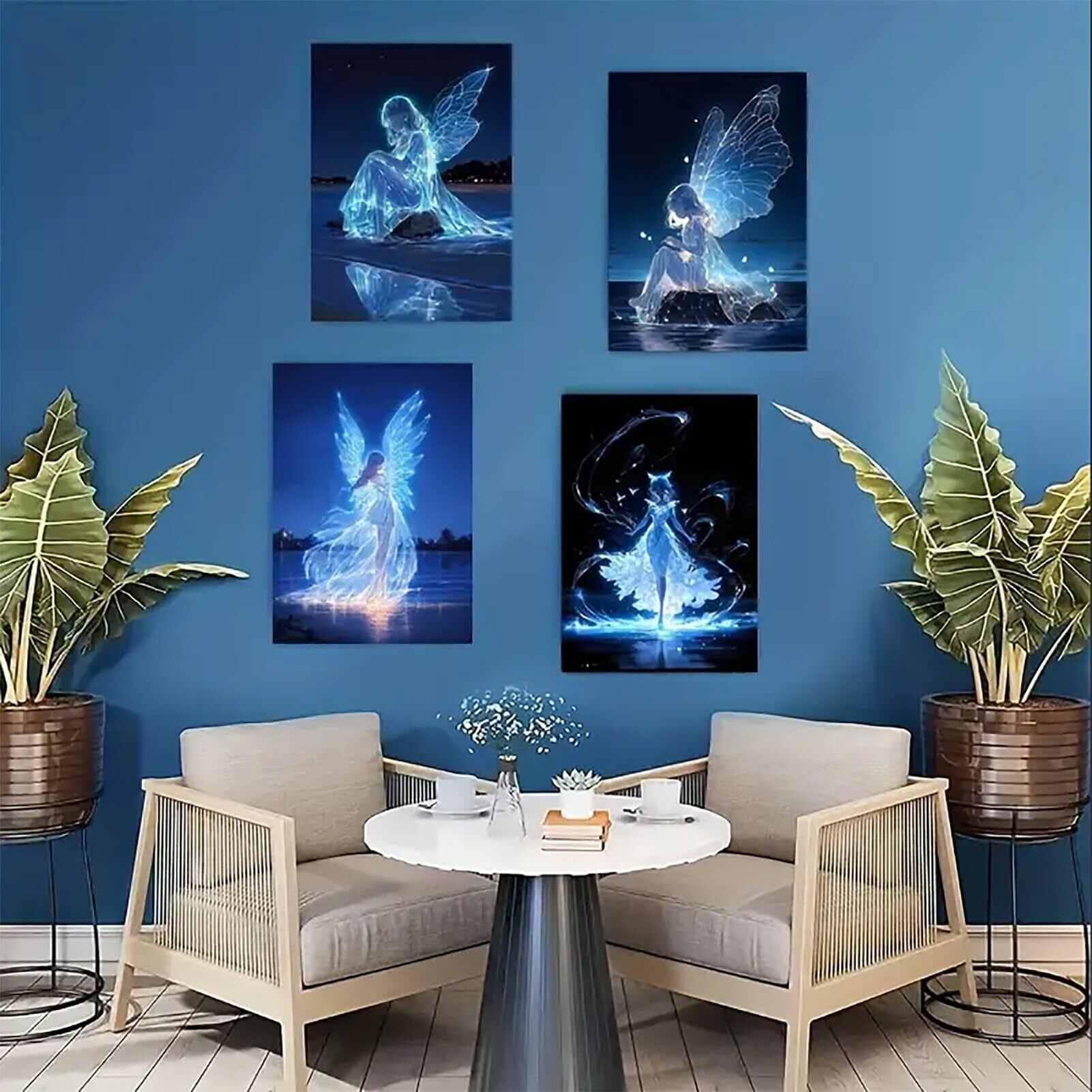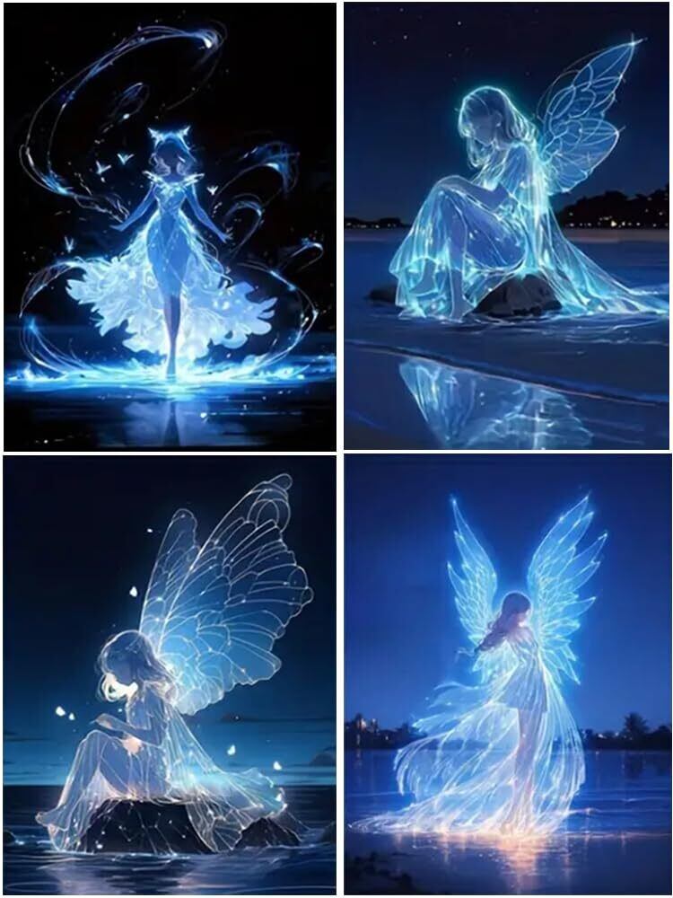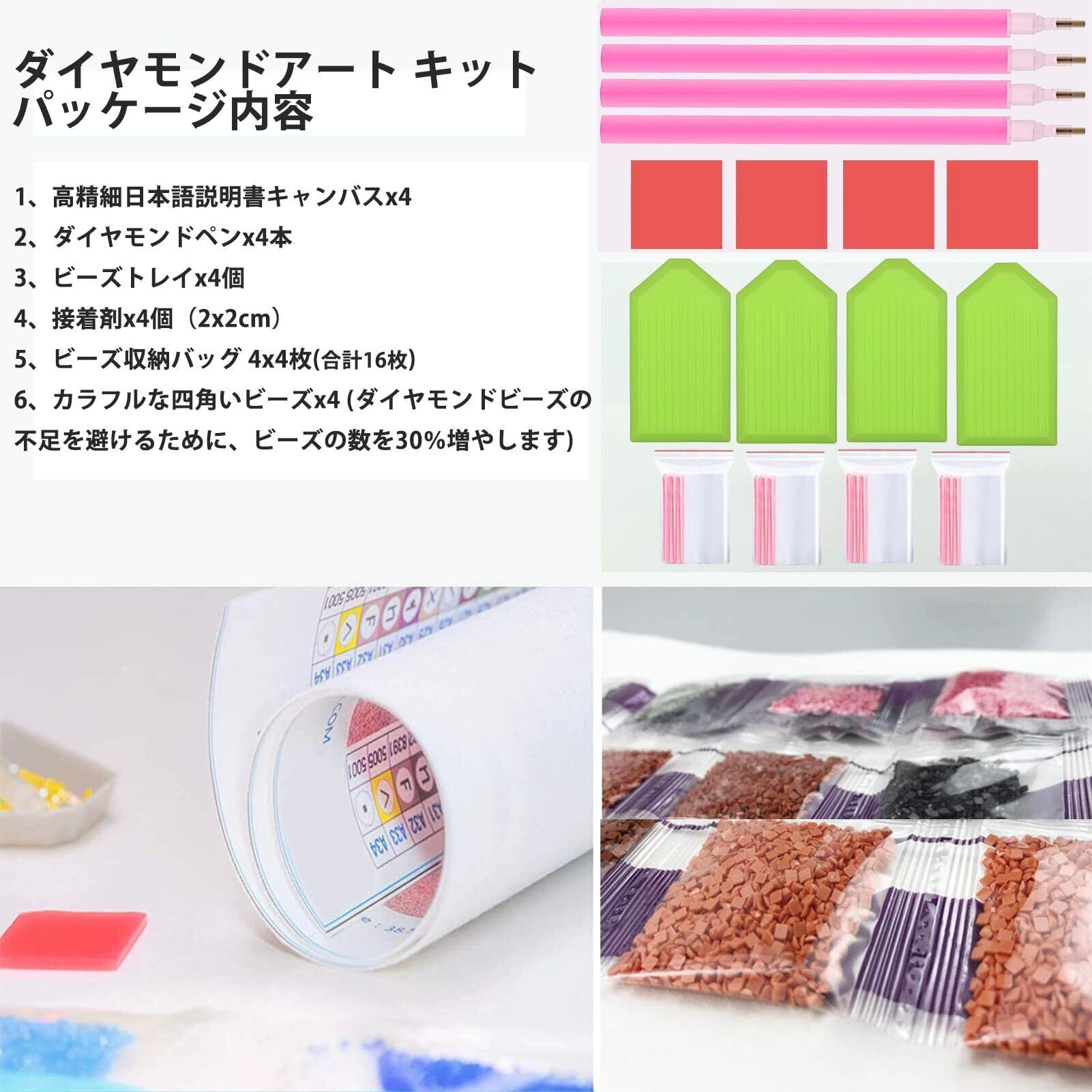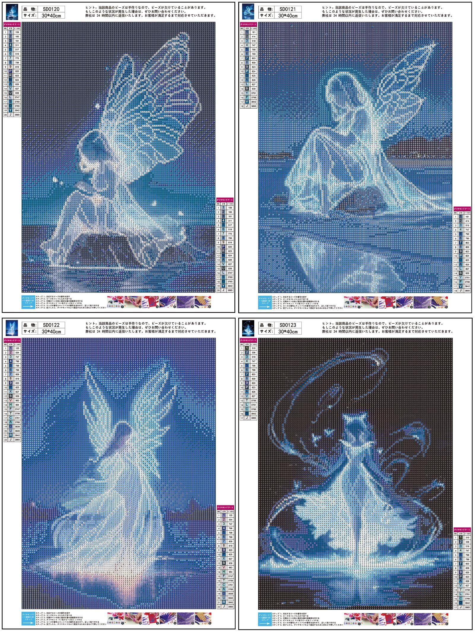 【5 Dダイヤモンドアート キット】天使 4個セット 四角いビーズ ダイヤモンドアートには必要なすべてのツールが付属しています。高精細日本語キャンバスx4枚、ダイヤモンドペンx4本、粘土糊x4個(2x2cm)、ビーズトレイx4個、ビーズ収納バッグ 4x4枚(合計16枚)、カラフルな四角いビーズx4 を含むる。ダイヤモンド スクエア ビーズの不足を避けるために、ビーズの数を30%増やします。