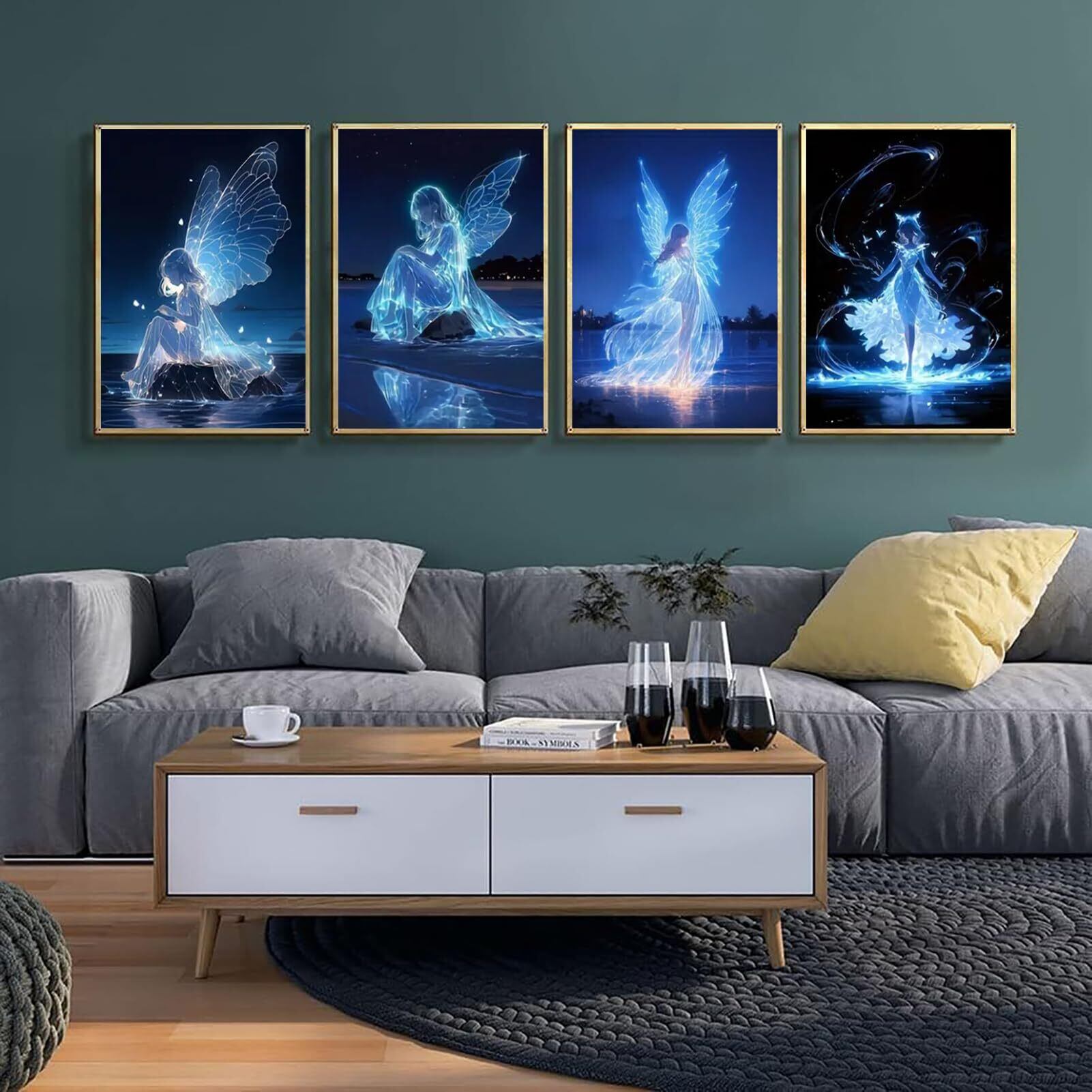 Amyaker ダイヤモンドアート キット 四角いビーズ 全面 4個セット ダイアモンドビーズ絵画キット DIY 手作り絵画 手芸キット モザイクアート 5D モザイクアート ダイヤモンド塗装 全面貼り付けタイプ 30x40cm 天使