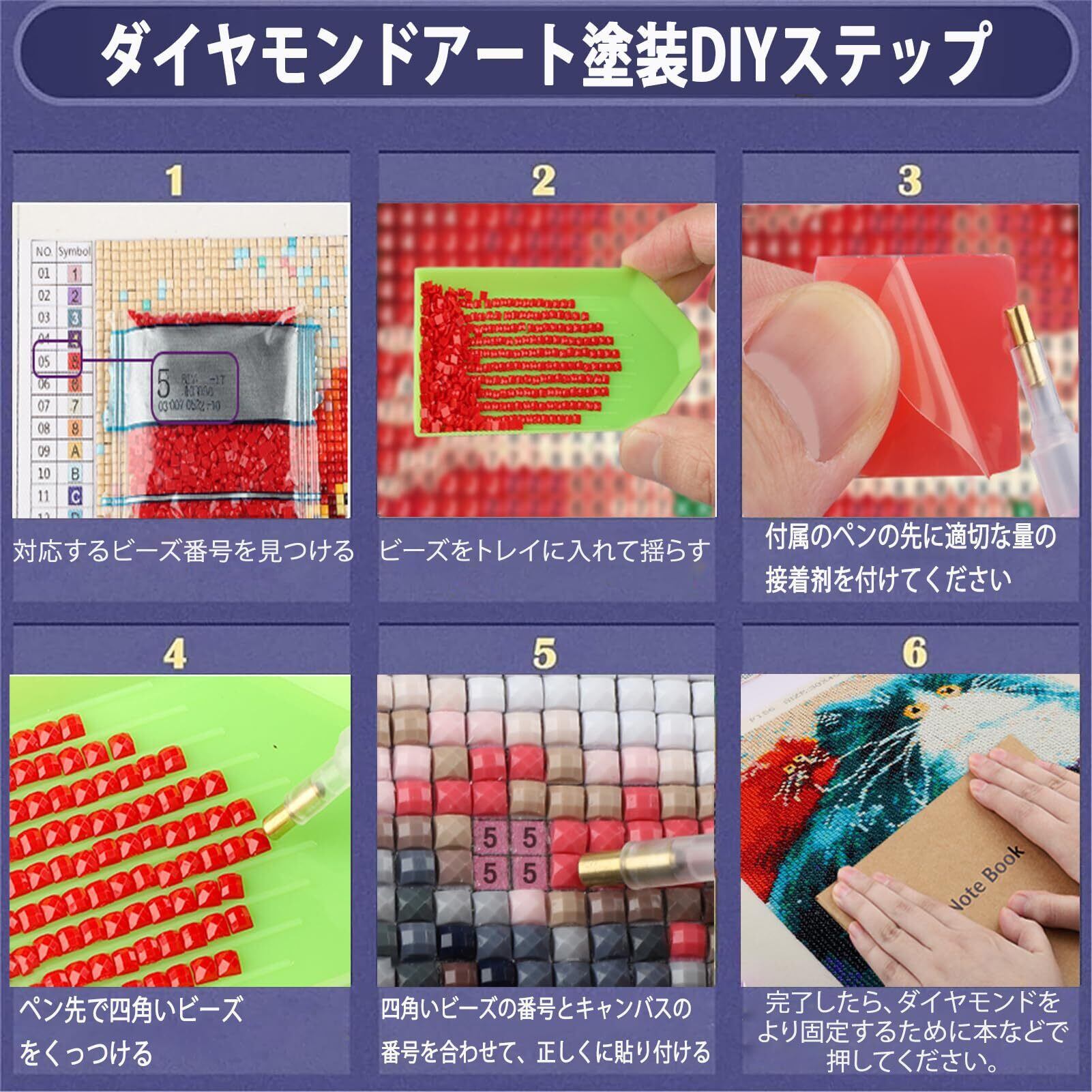 【高精細日本語説明書キャンバス】高精細キャンバスの数字と記号は鮮明で読みやすい。キャンバスには日本語の説明書があり、お年寄りや子供も簡単に仕上げることができます。貼り付ける完了したら、君はきっとこの絵画を好きになると信じています。 四角いビーズと丸いビーズの区別:丸いビーズはもっとキラキラしていて、四角いビーズは油絵のような質感で、画面はもっとはっきりしています。