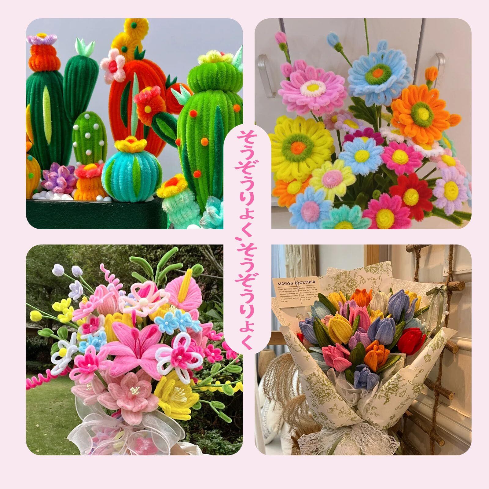 手芸モール カラーモール 6mm 約500本 カラーミックス 工作 モール クラフトモール 骨格モール カラフル シェニール DIY 飾り物 学校 手作り素材 手芸 用品 記念日 誕生日 母の日 画材 (柔らかい花の色調)