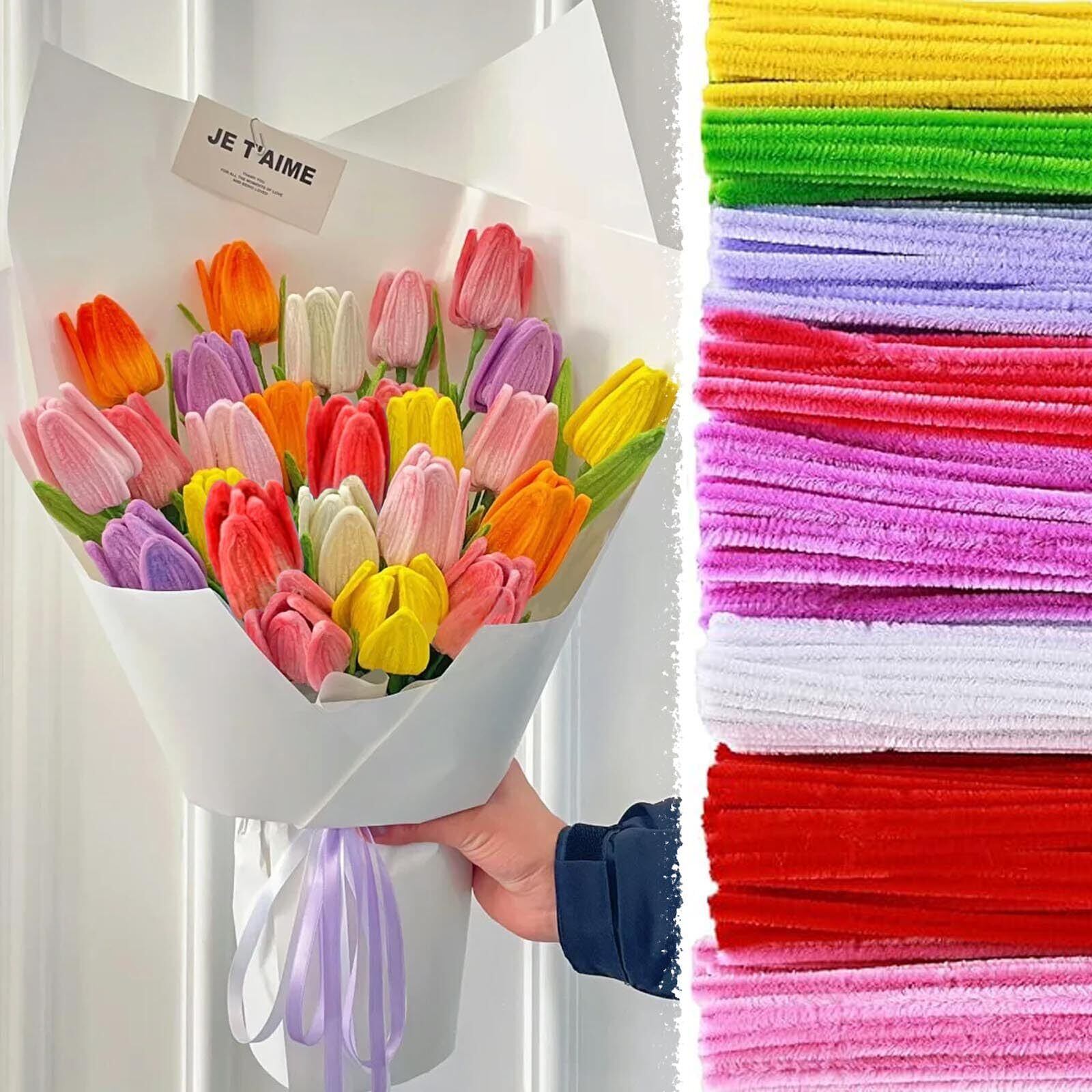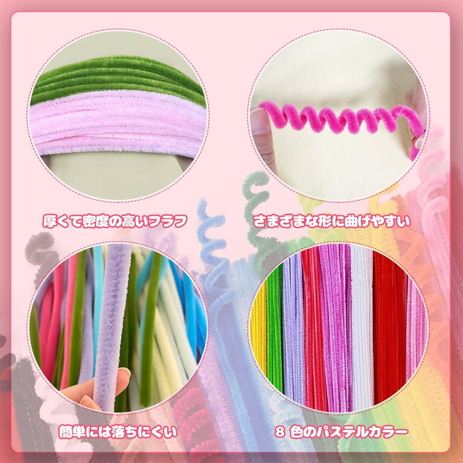 【商品仕様】8色のカラーバリエーションから選べるセット。各セットには手作りの毛糸が500本含まれています。サイズ:手芸モール約長さ30cm、幅6mm。