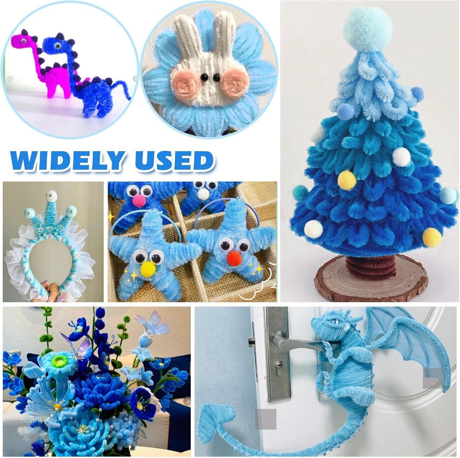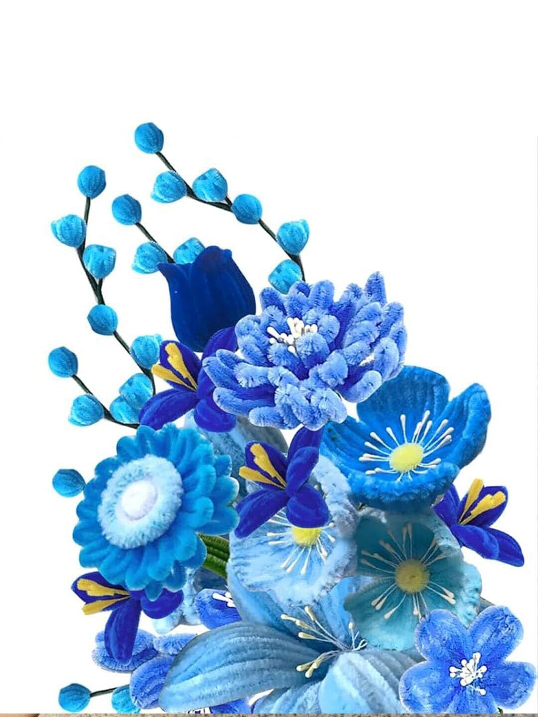 手芸モール 5色 約130本 ふわふわ 高密度 6mm 30cm 造花 モール花束 誕生日 記念日 卒業式 プレゼント モールフラワー クラフトモール 工作モール 花 フラワー ワイヤー 骨格モール アート DIY 飾り物 造形材料 学校 手作り素材 手芸材料用品 カラーミックス (ブルー)