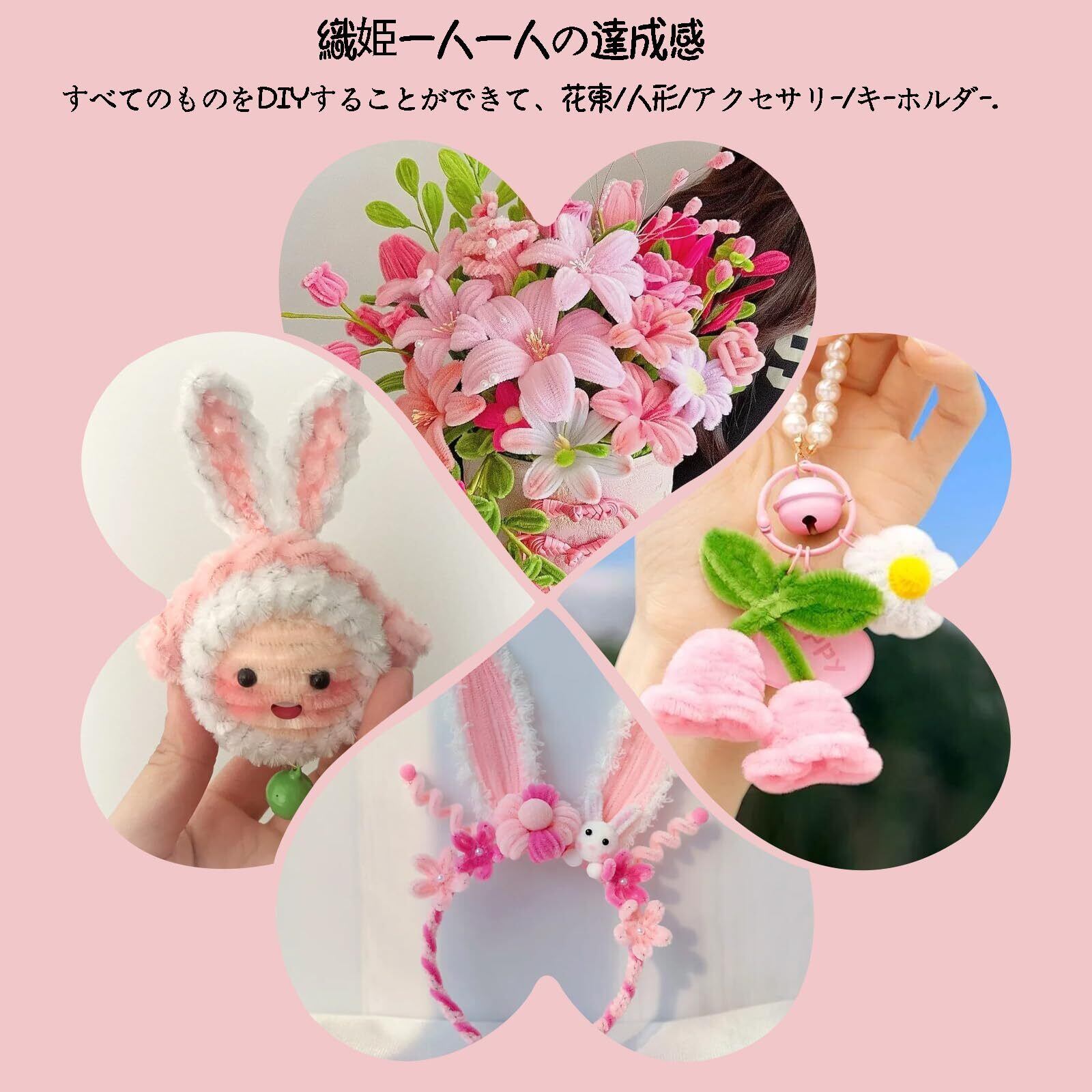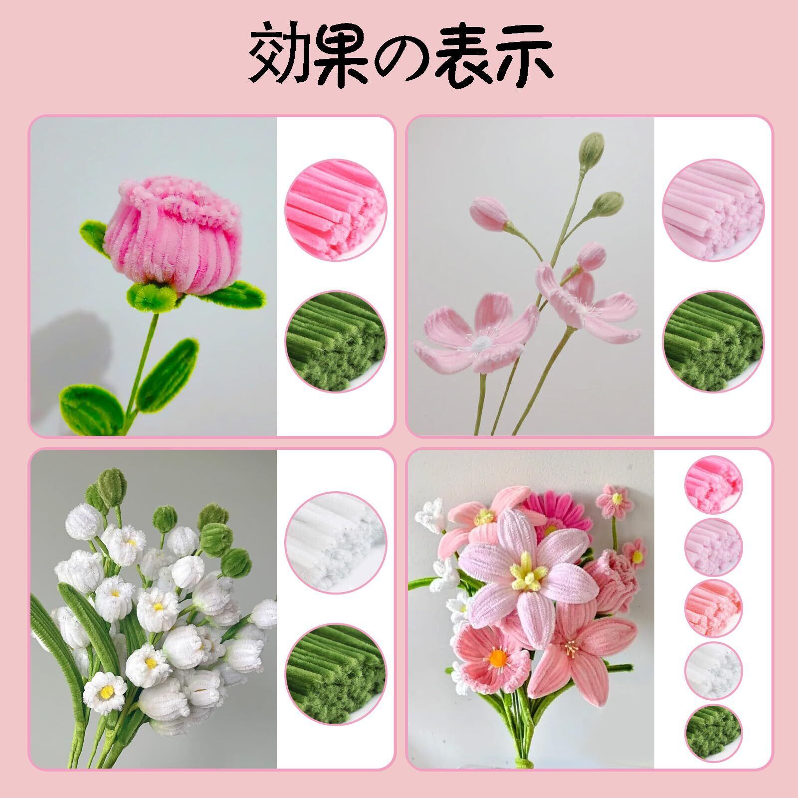 【在庫処分】手芸モール 250本 カラーミックス フラワーモール 手作りキット 6mm 花束 モールフラワー キット クラフトモール 工作モール 人工花茎20本フラワーテープ緑1巻 双頭花おしべ DIY 飾り物 造形材料 学校 手作り素材 手芸 用品 記念日 誕生日 母の日 バレンタインデー 贈り物 (ピンク色)