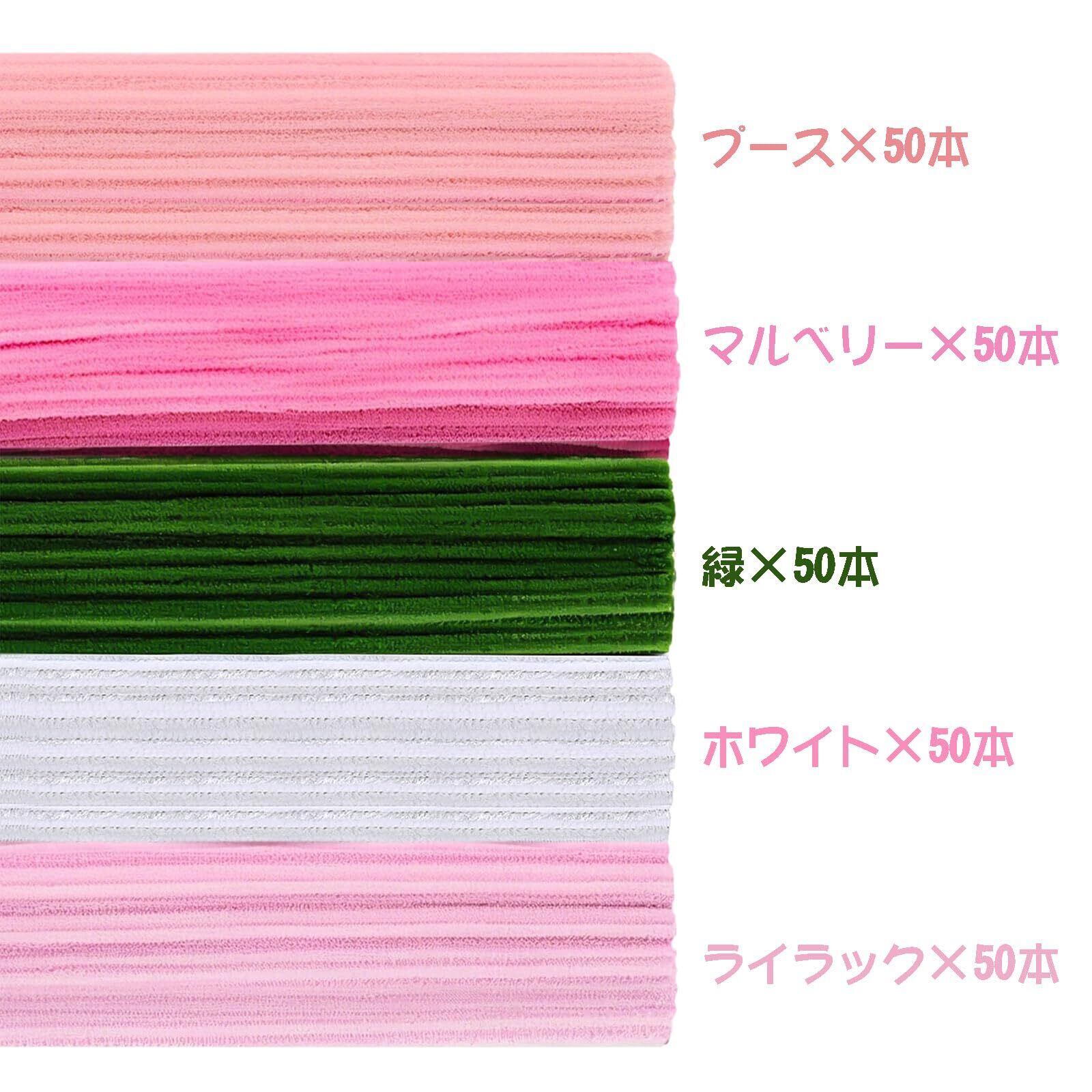 手芸モール 250本 カラーミックス フラワーモール 手作りキット 6mm 花束 モールフラワー キット クラフトモール 工作モール 人工花茎20本フラワーテープ緑1巻 双頭花おしべ DIY 飾り物 造形材料 学校 手作り素材 手芸 用品 記念日 誕生日 母の日 バレンタインデー 贈り物 (ピンク色)