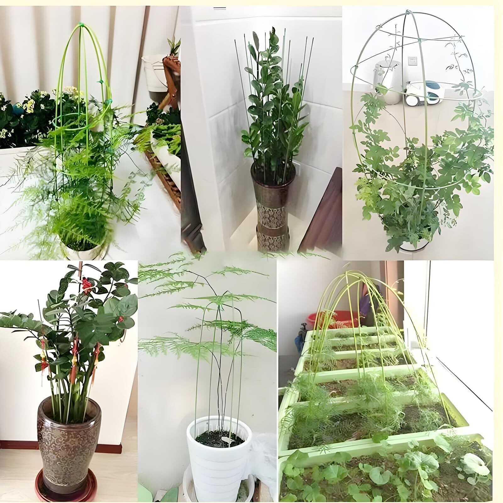 【耐久性】安定したサポート:バラ、クレマチスなどのつる植物、花の茎、トマト、キュウリなどの野菜の直立栽培に適しています。柔軟な調整:手で曲げたり形を整えたりできるので、植物の成長角度に合わせて調整でき、繰り返し使用しても変形しません。濃い緑色で目立たず、植物と調和します。