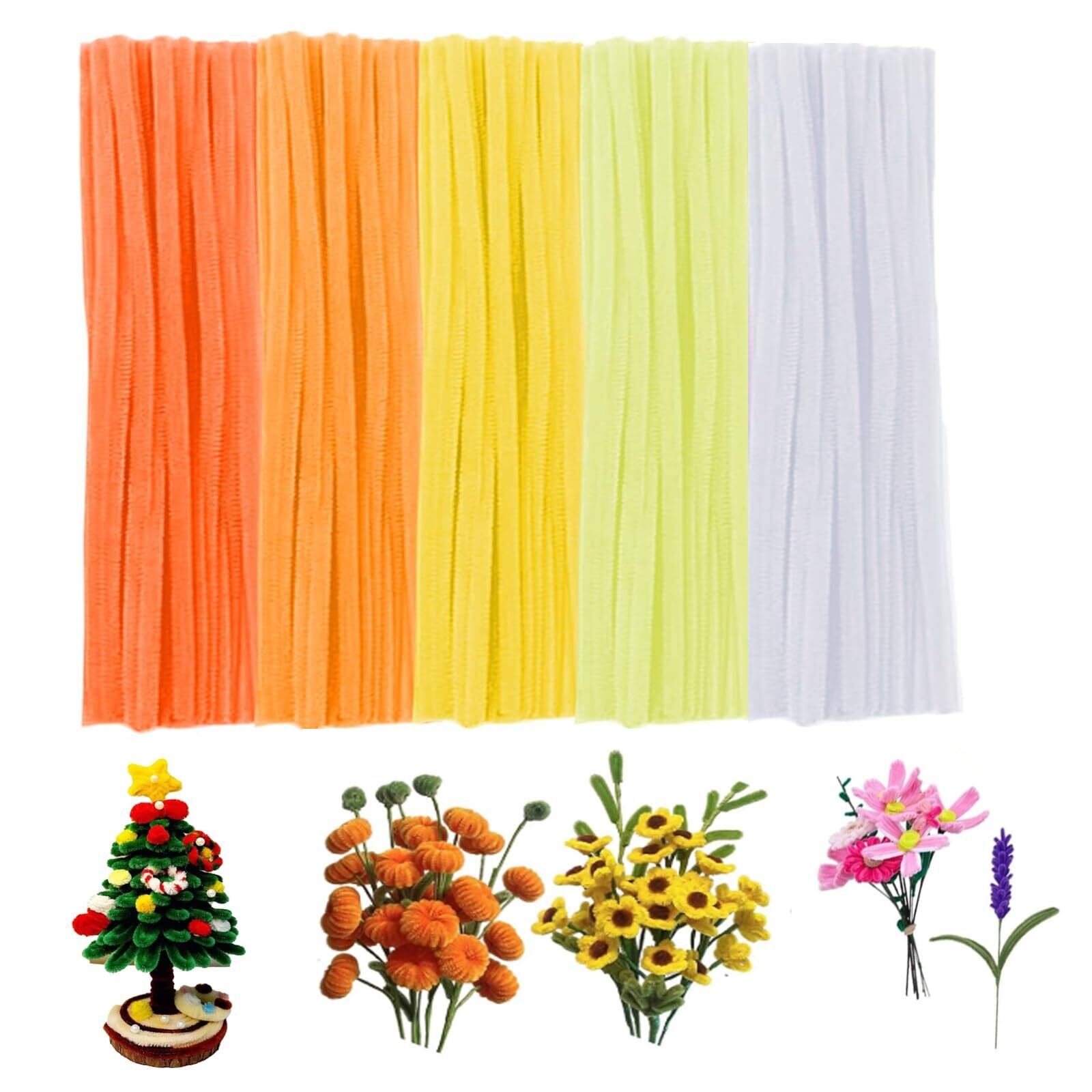 手芸モール 花セット約100本 人工花茎 花束 ブーケ 手作りキット DIY カラーモール クラフトモール 工作モール 造花 フラワー ワイヤー 骨格モール ワイヤーアート 品 バレンタインデー ギフト 用 母の日 記念日 誕生日 手作り素材 (イエロー)