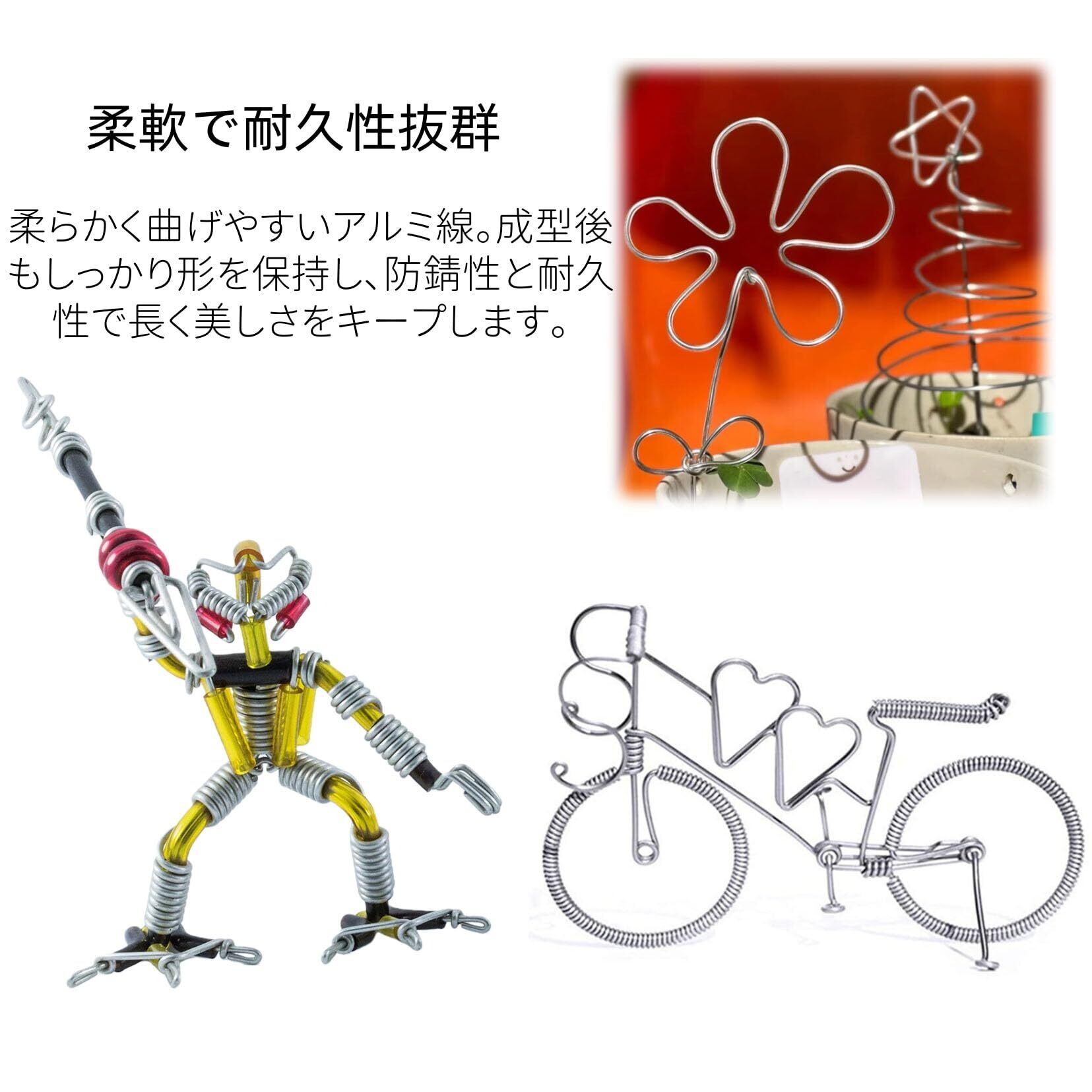 【高品質素材】軽量で柔軟性が高く、防錆性にも優れるアルミワイヤーです。曲げやすく加工しやすい特性を持ち、DIYやクラフト、手作りの工芸作品に最適な素材です。
