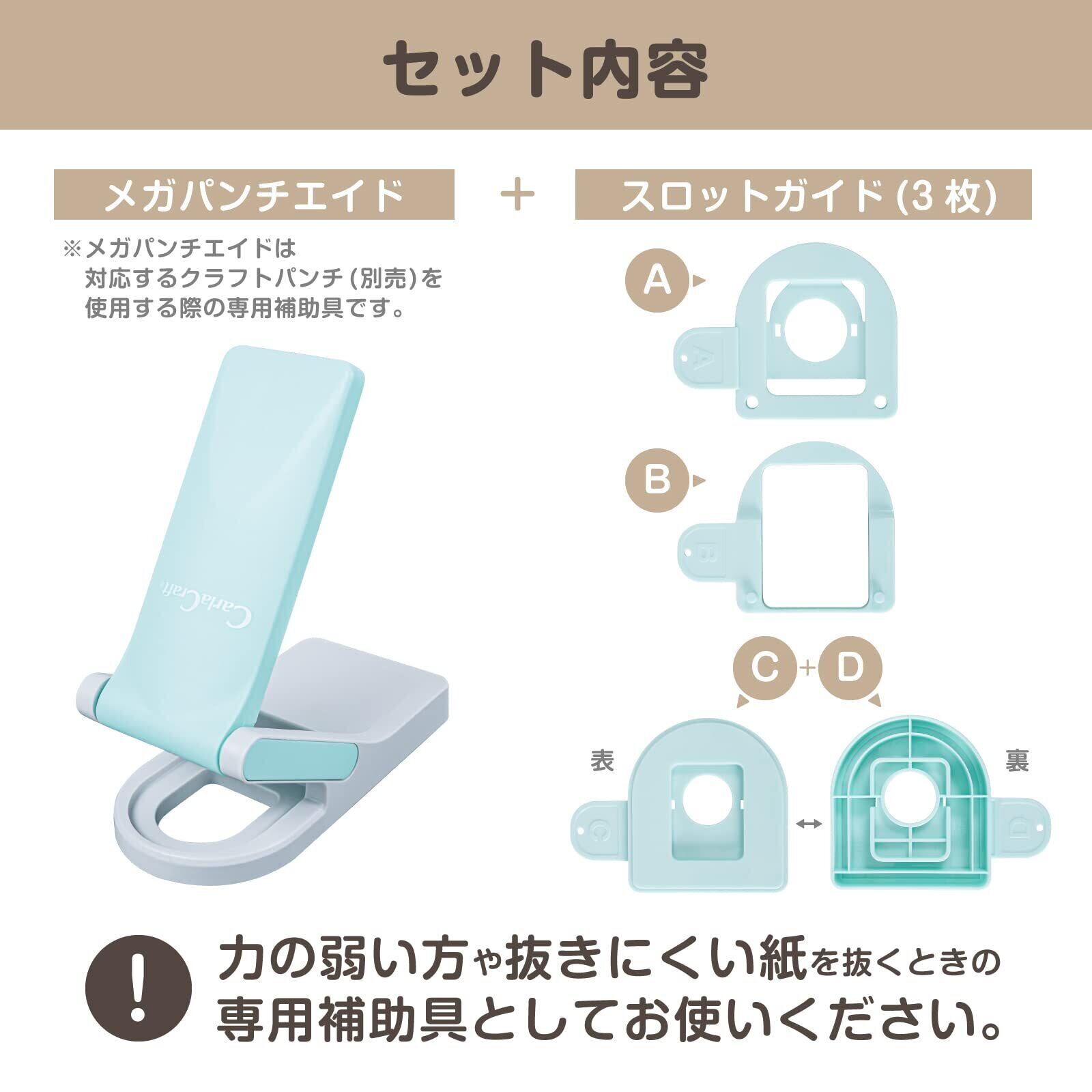 【特長】クラフトパンチ専用補助具です。お子様や力の弱い方、抜きにくい紙も簡単にパンチできます。