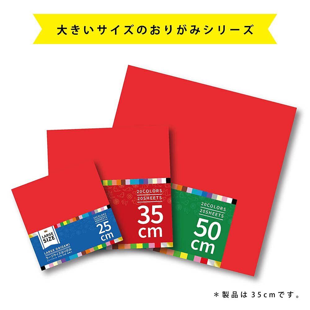 よく使う基本的な20色が入った35×35cmの大きいサイズのおりがみ。一般的なおりがみ(15×15cm)よりも大きく迫力満点のサイズ感。