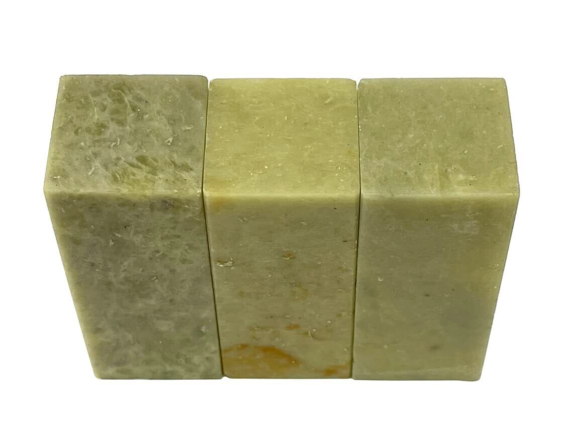 【3個セット】篆刻(てん刻)用 / 印材サイズ 約21×21×50mm / 3個入り ・書道や水墨画、絵手紙作品の雅号印制作に最適な篆刻初心者でも彫りやすい印材です。彫る前に印面を耐水ペーパーで滑らかにしてお使いください。薄緑色の印材で、印材としての歴史も古く、現在も広く使われています。青田石は、「ひび割れ」が発生しております。また、天然の石印材ですので、石質には個体差があります。印刀が入りにくい硬い粒状のものが混入している場合もあります。予めご了承をお願い致します。また、キズ、欠け、歪み等がある場合があります。その際は紙やすり(耐水ペーパー)を利用して修正のうえお使いください。