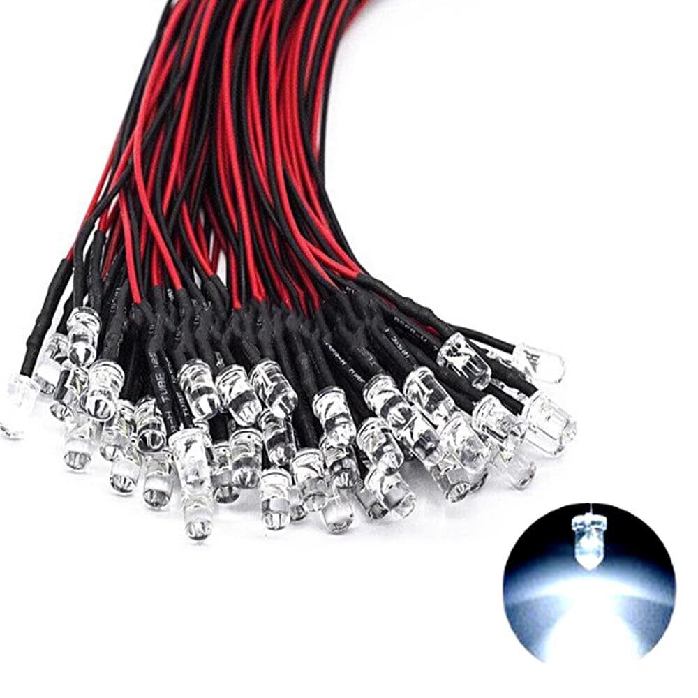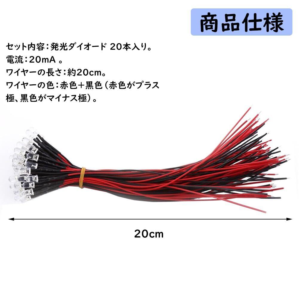 【2022最新】サムコス ジオラマ電飾用 LED 5mm 20個セット 白/イエロー 小型電球 配線付き 3-12V用 抵抗付属汎用 電車模型 模型電飾 建物模型 カラーライト (白)