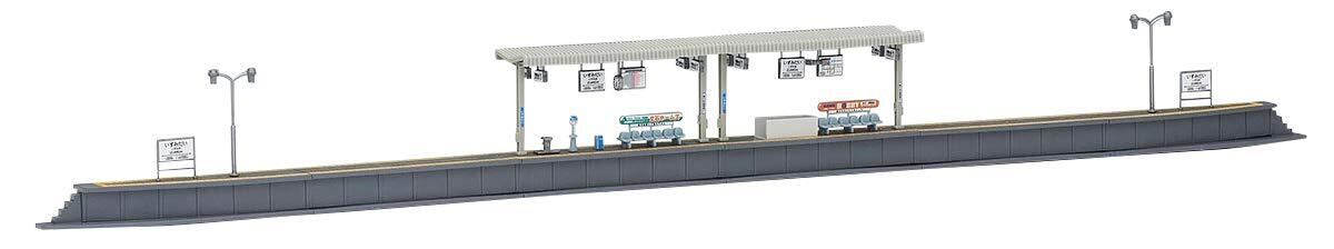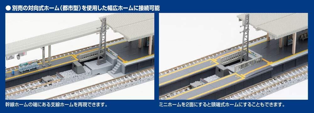 別売の対向式ホーム (都市型)を使用した幅広ホームに接続できるパーツを使用して、ホーム端に設置された支線ホームが再現可能。