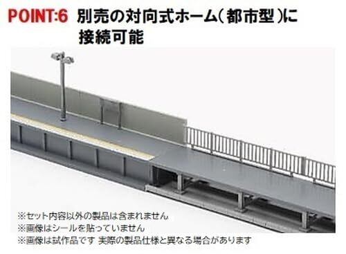 ホーム高さは[4281]対向式ホームセット (都市型)と同じ。20m級車両4両分のホーム1面や、20m級車両2両分のホームを2面として組立てることが可能。