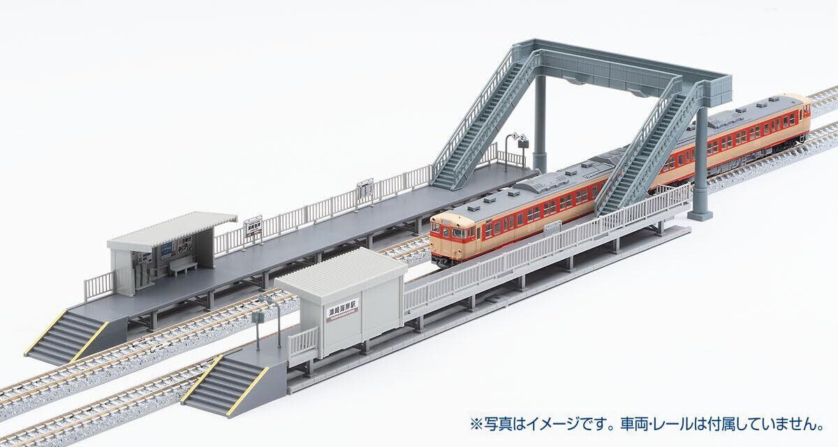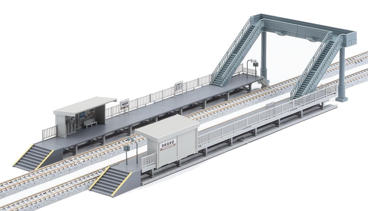 跨線橋の階段は向きや、通路の長さを変更することが可能。駅名標・ベンチ・券売機・簡易自動改札機・列車停止位置標識などが付属。