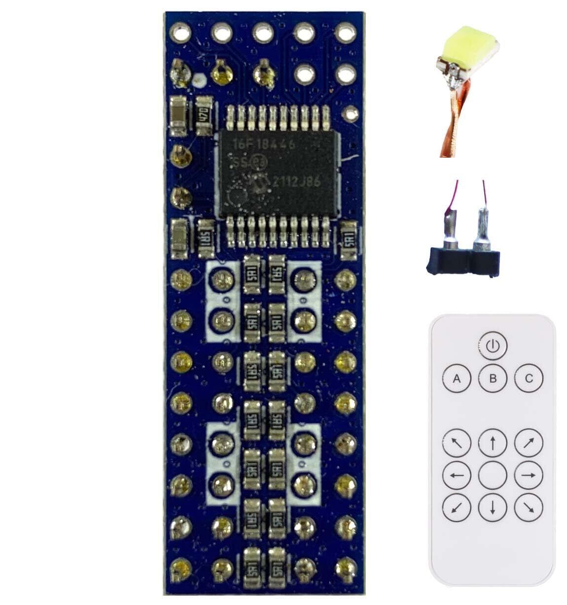 電飾LEDシステム。プラモデル・ジオラマ・ミニカーなど向けリモコン制御可能な電飾用LEDシステム・8回路 (最大5.5V・LED付き・コネクタ付き・リモコン付き)