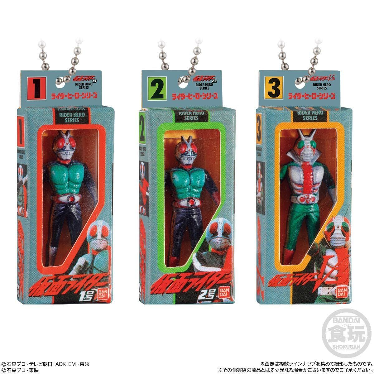 仮面ライダーの箱パッケージ入りソフビのミニチュアが登場! 仮面ライダーのソフビシリーズ『ライダーヒーローシリーズ』より発売されていたウィンドウブリスター型の「箱パッケージ入りソフビ」を全高約5cmのミニチュアチャーム化! 中身はシワまで再現したリアル立体造形+精密彩色が施されたミニフィギュア! さらに「10.仮面ライダーW サイクロンジョーカー」、「11.仮面ライダーゼッツ フィジカムインパクト」の2種は、本商品オリジナルのパッケージデザイン! ラインナップはシークレット1種を含む全12種! 付属するボールチェーンで身の回りのものに着けてお楽しみください! ●ミニチュアチャーム(全12種/うちシークレット1種) 1.仮面ライダー新1号 2.仮面ライダー新2号 3.仮面ライダーV3 4.仮面ライダーBLACK 5.仮面ライダークウガ マイティフォーム 6.仮面ライダー龍騎 7.仮面ライダーファイズ 8.仮面ライダーカブト ライダーフォーム 9.仮面ライダー電王 ソードフォーム 10.仮面ライダーW サイクロンジョーカー 11.仮面ライダーゼッツ フィジカムインパクト 12.シークレット ●準チョコレート15g