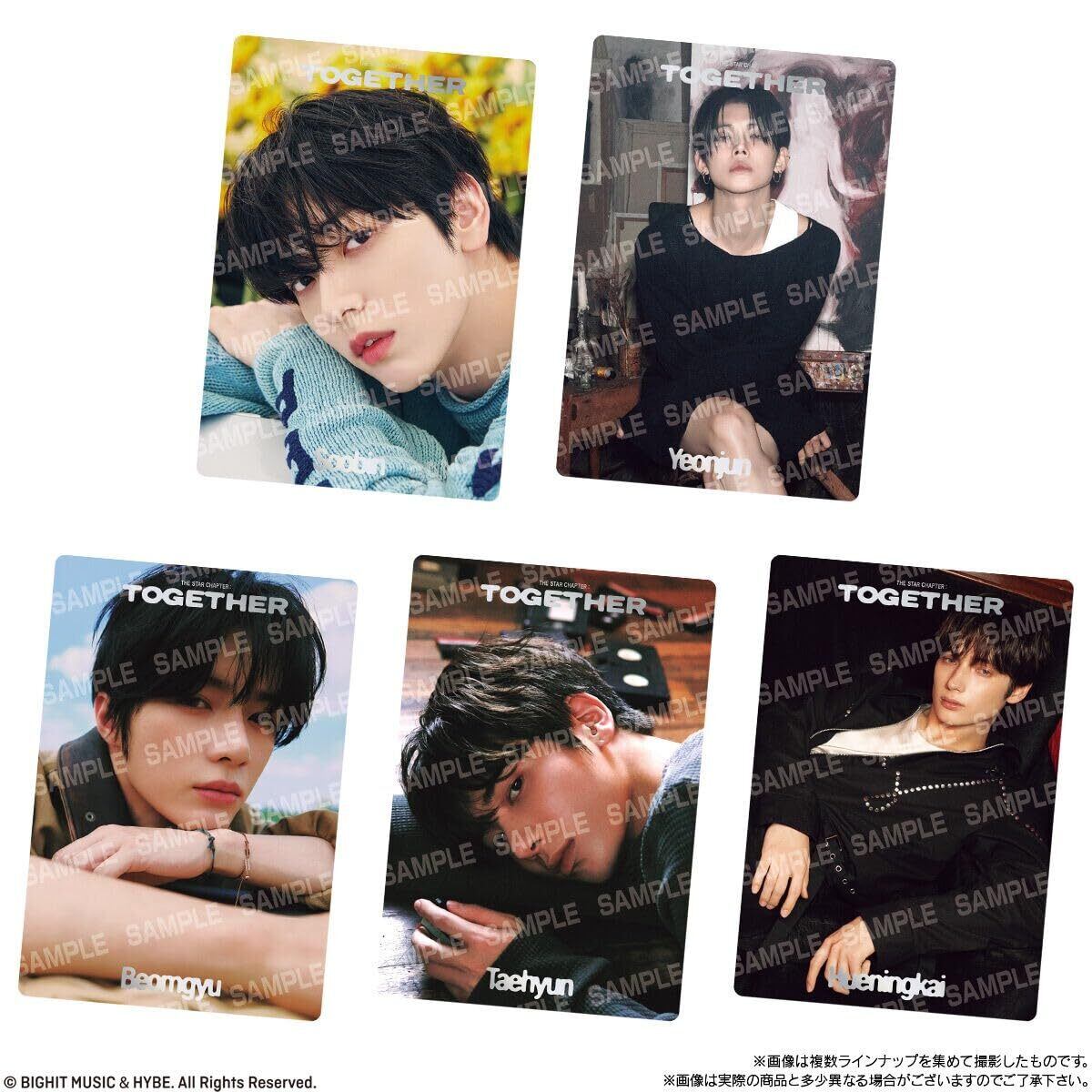 全23種よりランダムに封入。『TOMORROW X TOGETHER』の4th Album『The Star Chapter: TOGETHER』の肖像を使用したシールとウエハースがセットになった商品です。シールは全23種で全種光り輝くメタリック仕様。レアシールは箔押し、スーパーレアシールは箔押しとさらにキラ加工をほどこした豪華仕様です!