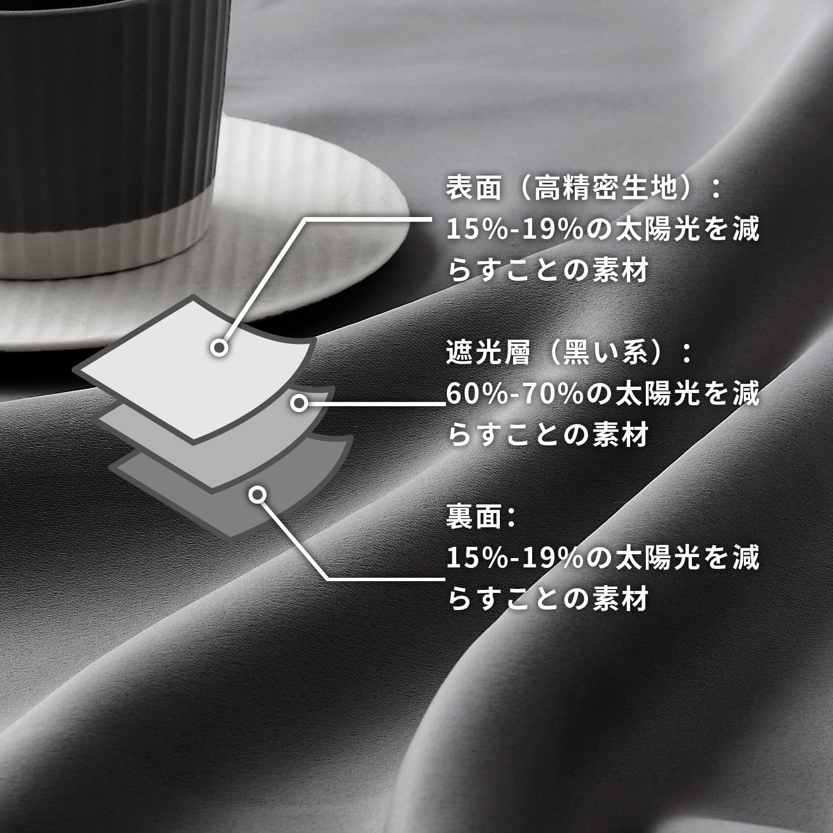 ◆【三重織り技術】生地は三重構造のテクノロジーの技術利用して黒い系を織り込んでいるから、優れた遮光機能が備えております。きちんと室外からの日差しや紫外線などをしっかり遮られる機能付きの厚地遮光カーテンです。
