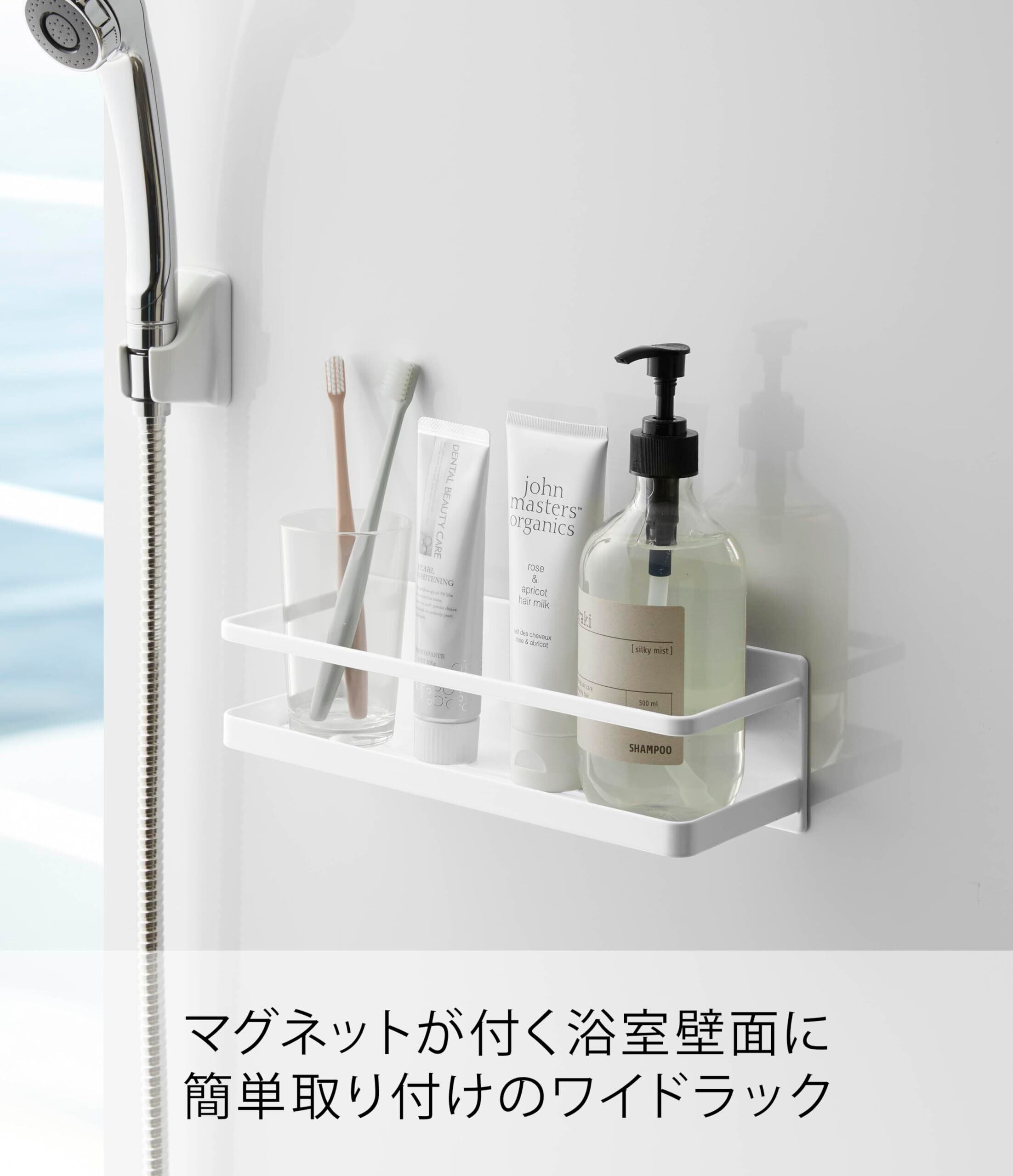 マグネットが付く浴室壁面に簡単取り付けのワイドラック。
