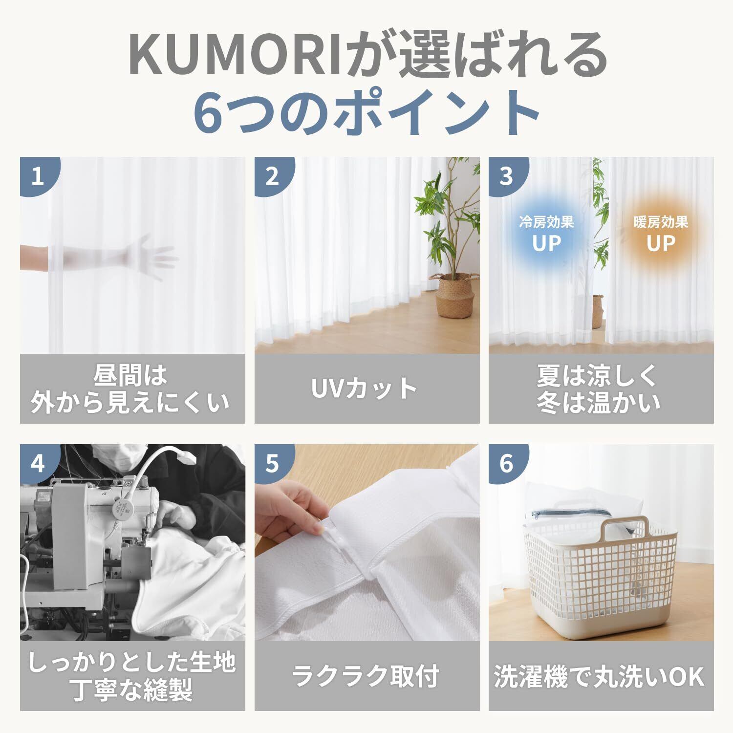 【注意事項】KUMORIのカーテンは日本国内で企画し、海外の工場で日本基準の品質管理を徹底していますので、より安心してご購入いただけます。 ※商品の色合いは、モニター環境により実物とは多少異なる場合があります。 ※万が一商品に不具合がある場合、商品到着後の90日以内にご連絡いただければ返品・交換を承ります。何かご不明な点があれば、遠慮なく当店([email protected])までお問い合わせください。