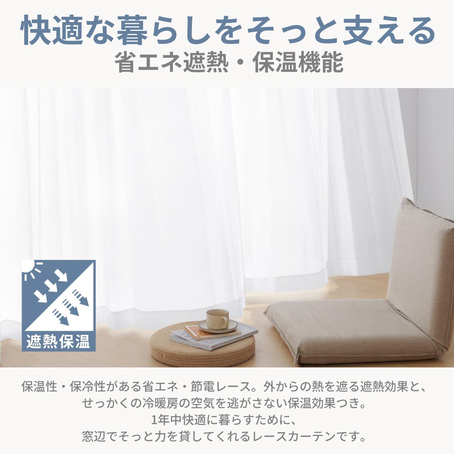 【オールシーズン快適な遮熱・保温性】夏は外からの熱をブロックし、冬は暖房の熱を逃しにくい保温効果で、冷暖房効率アップ。季節を問わず室内を快適な温度に保ち、省エネ・節電にもつながります。1年を通して快適な暮らしをサポートします。