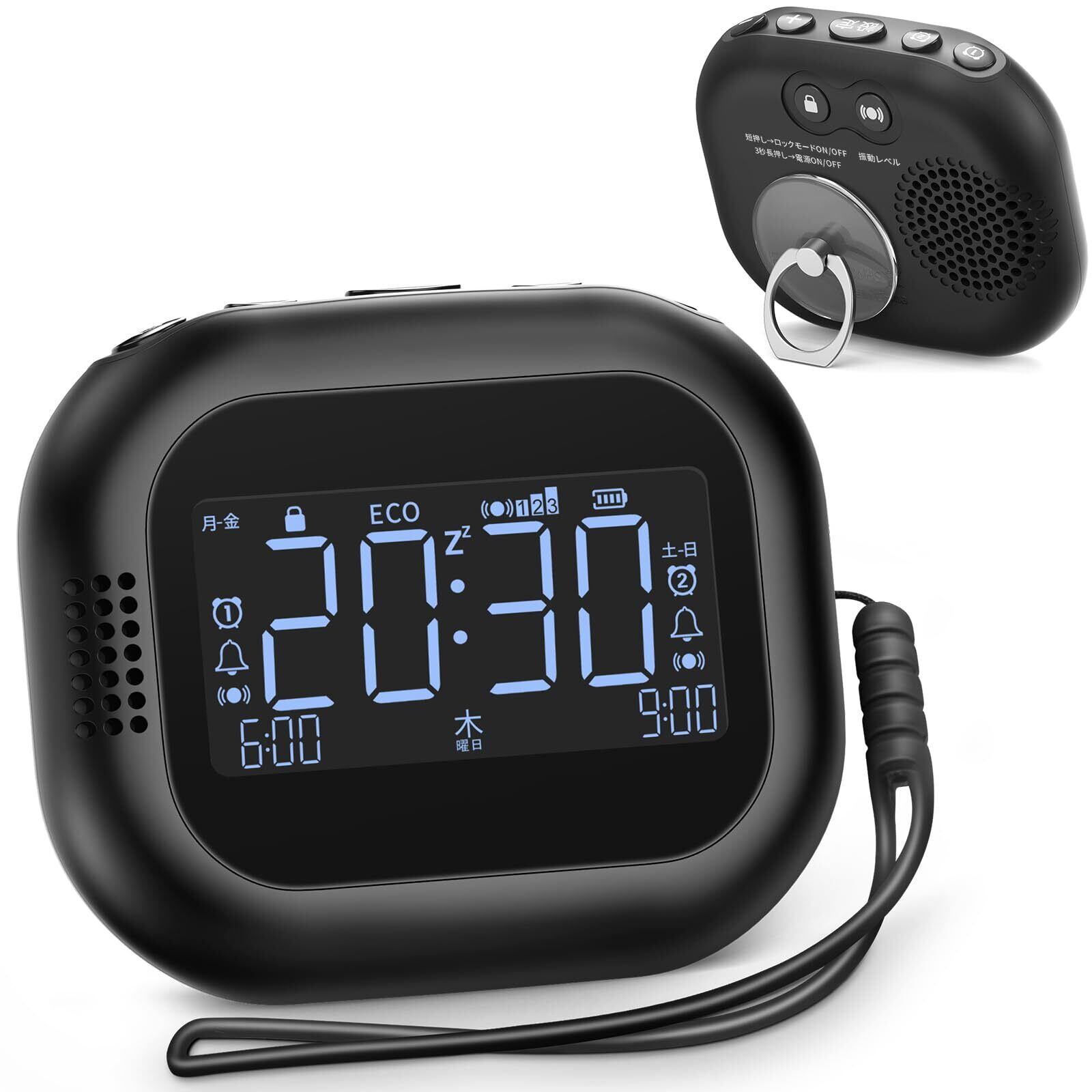 特徴 強力振動, スヌーズ, 2つのアラーム同時設定可能, 大画面表示, 省電力モード