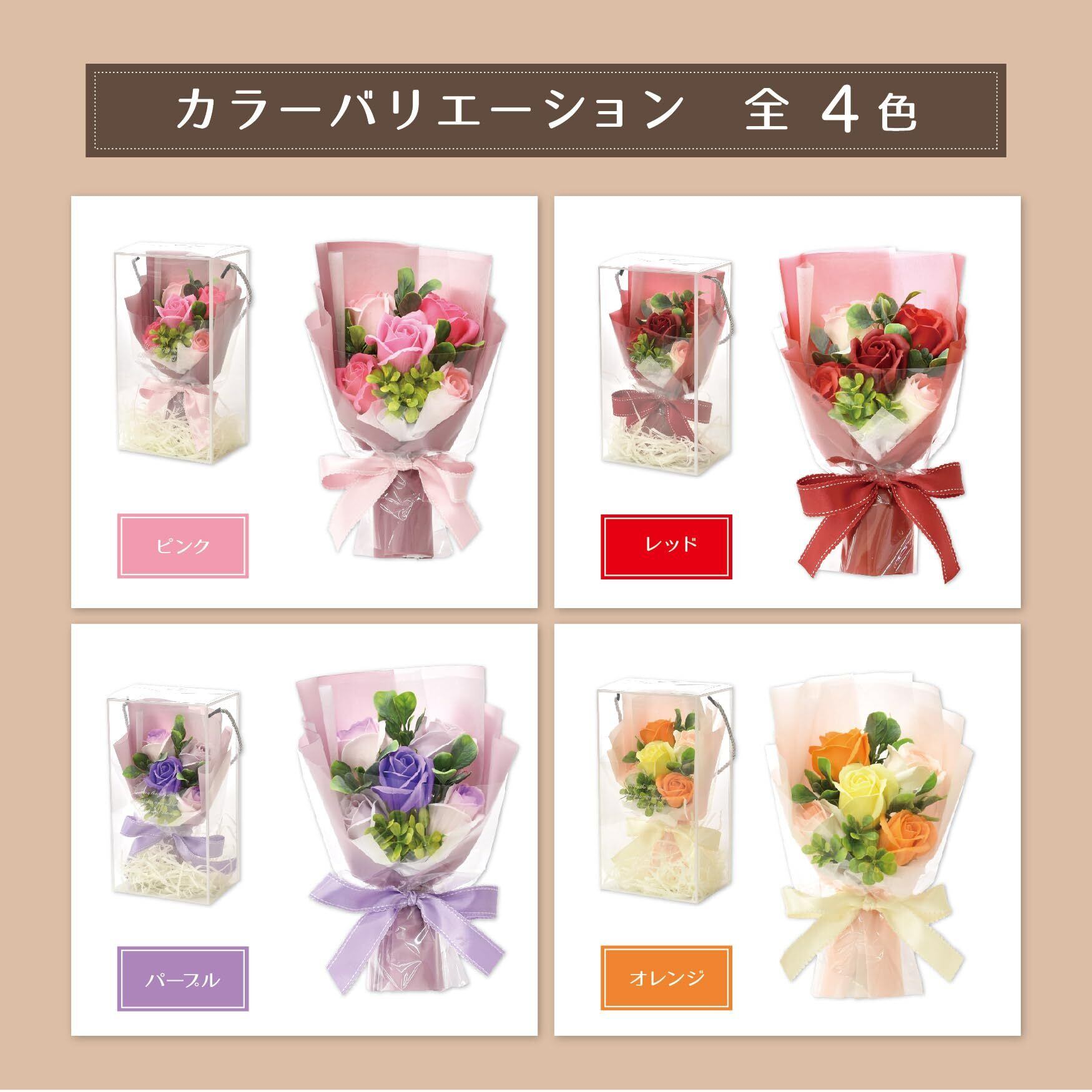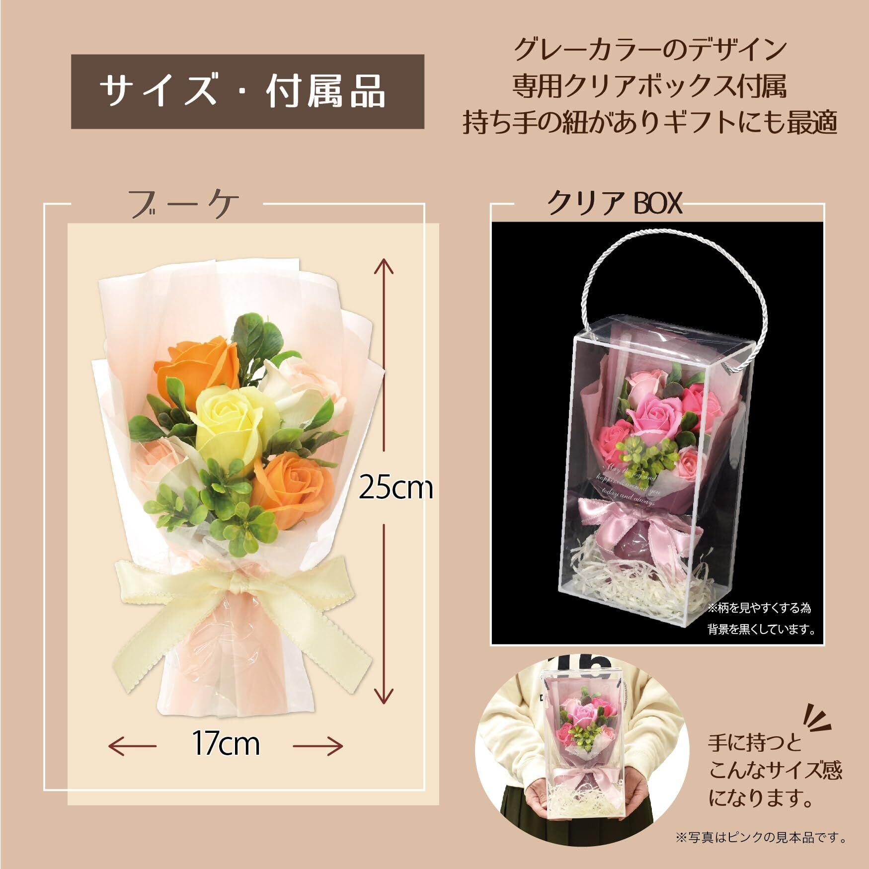 ポピー名古屋 ソープフラワー シャボンフラワー 造花 ギフト プレゼント 5輪ブーケ バラ 花束 約25cm クリアボックス付き SH-048 オレンジ