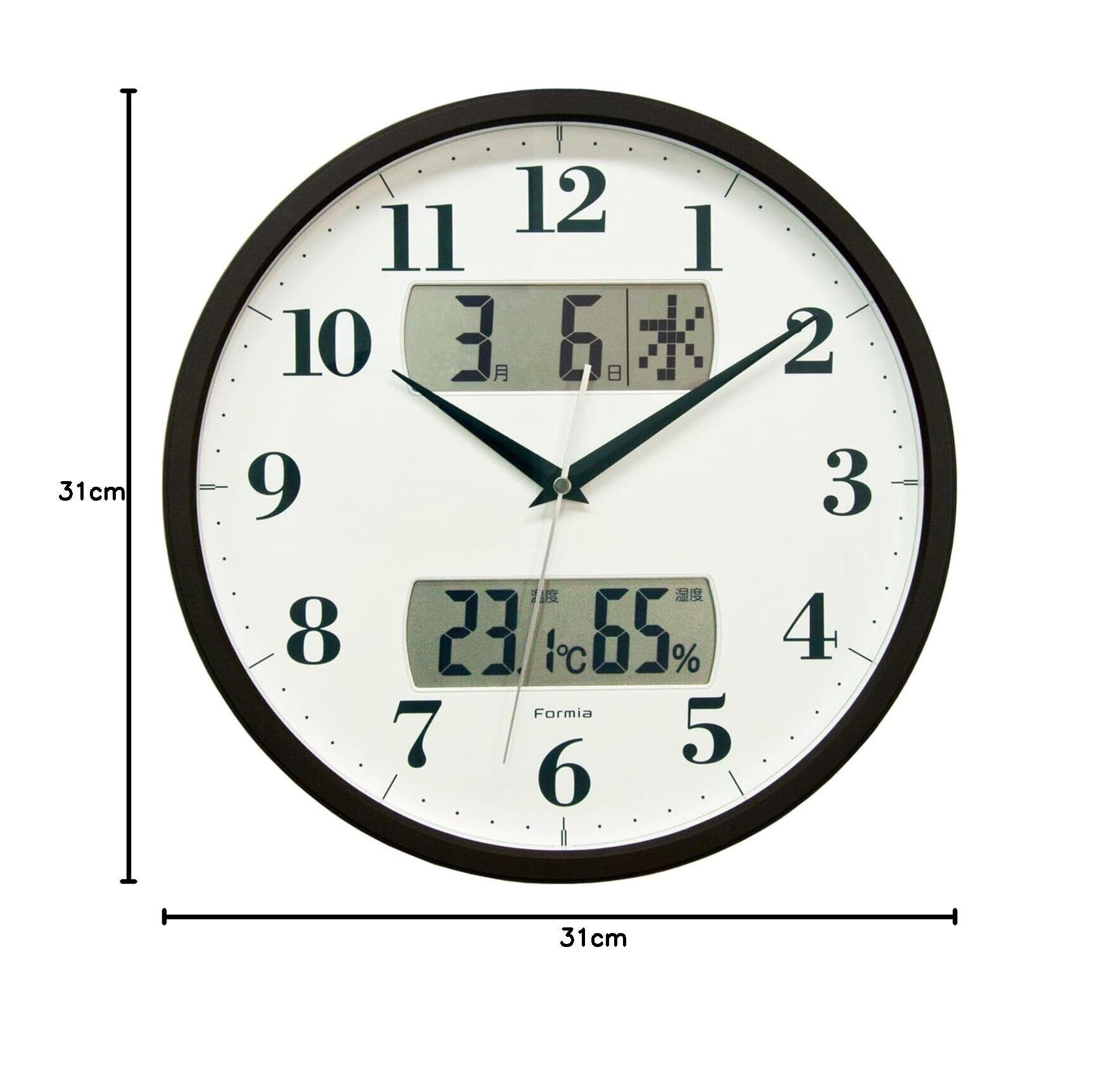 Formia(フォルミア) 掛け時計 時計 壁掛け 電波時計 静音 温度 湿度 温湿度計 日付 カレンダー 曜日 夜間秒針停止 アナログ 保土ヶ谷電子販売 ブラウン HWC-001