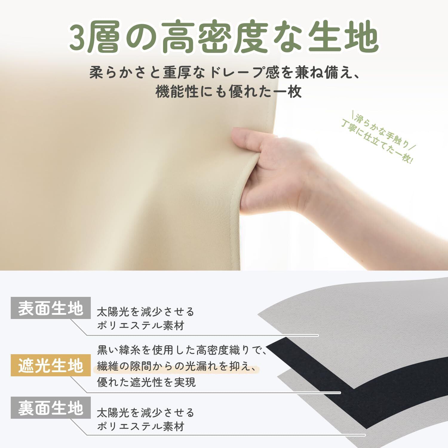 【商品仕様】※サイズ:幅72cmx丈170cm ※素材:ポリエステル100%の生地を採用し、シルクのような柔らかさとマットな質感を実現。優れたドレープ性を持ち、耐久性に優れ、長期間使用可能。※機能:遮光1級/遮熱保温/間仕切り/ウォッシャブル。(ご注意:つっぱり棒は付属しておりません)
