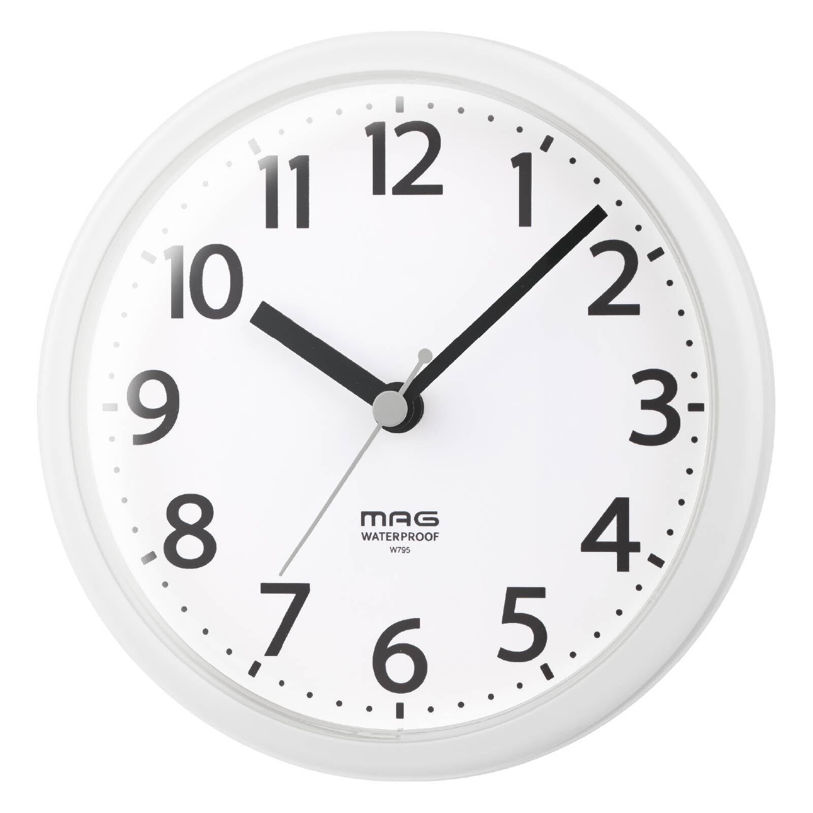 MAG(マグ) バスクロック マグネット 磁石 掛け時計 壁掛け時計 置き時計 アナログ 生活防水 IP54 スタンド 静音 連続秒針 プラスチック 見やすい シンプル お風呂 浴室 洗面所 脱衣所 バスルーム キッチン 台所 水回り 縦15.0×幅15.0×奥行4.8㎝ W795AWHZ ノア精密