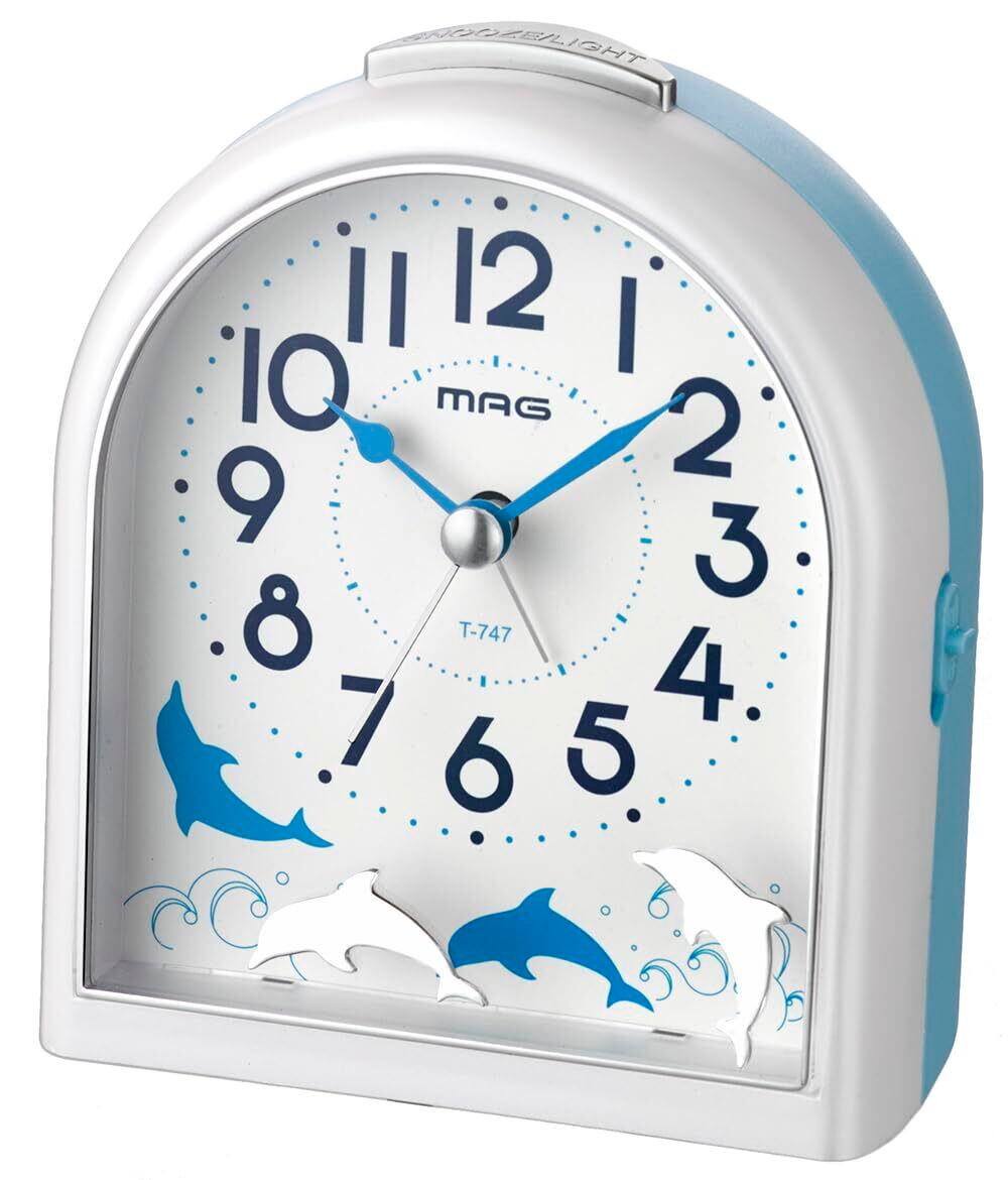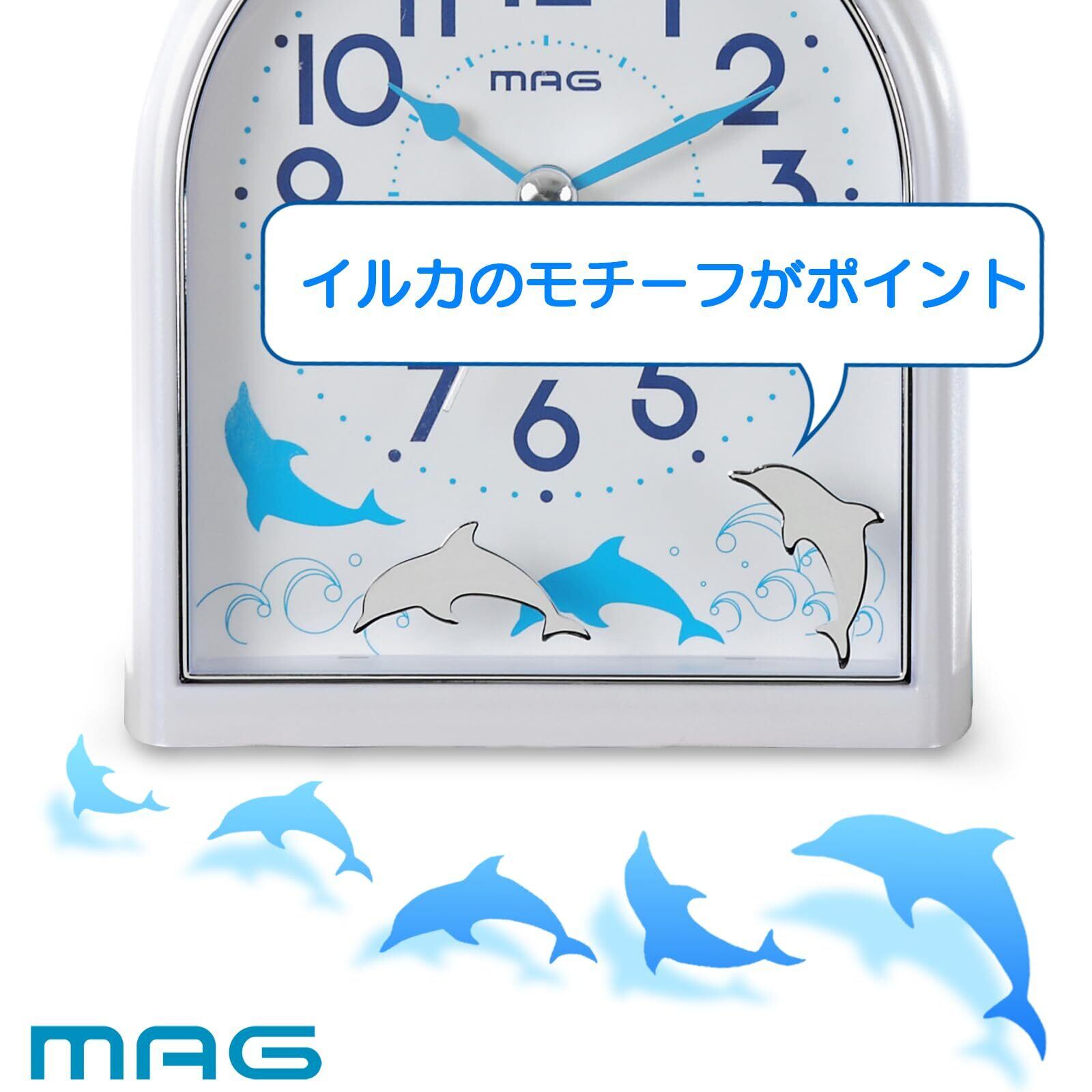 【2022最新】MAG(マグ) 目覚まし時計 置き時計 アナログ イルカ 動物 かわいい 子供 静音 連続秒針 電子音 アラーム スヌーズ ライト ホワイト ミグレイト T-747 WH-Z ノア精密