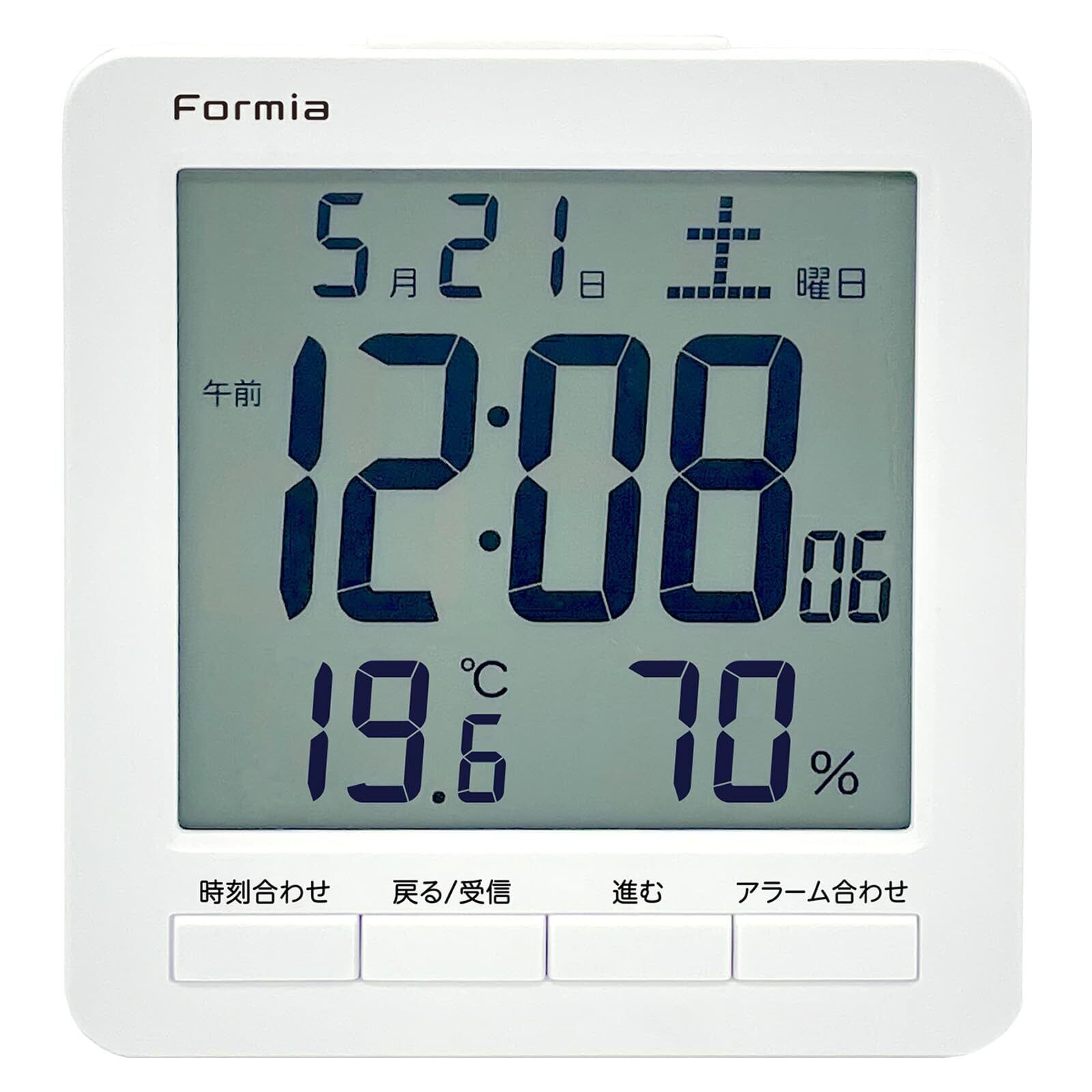 Formia(フォルミア) 電波 デジタル時計 大画面 見やすい 温度 湿度 温湿度計 日付 目覚まし 置き 卓上 子供 保土ヶ谷電子販売 ホワイト HT-024RC