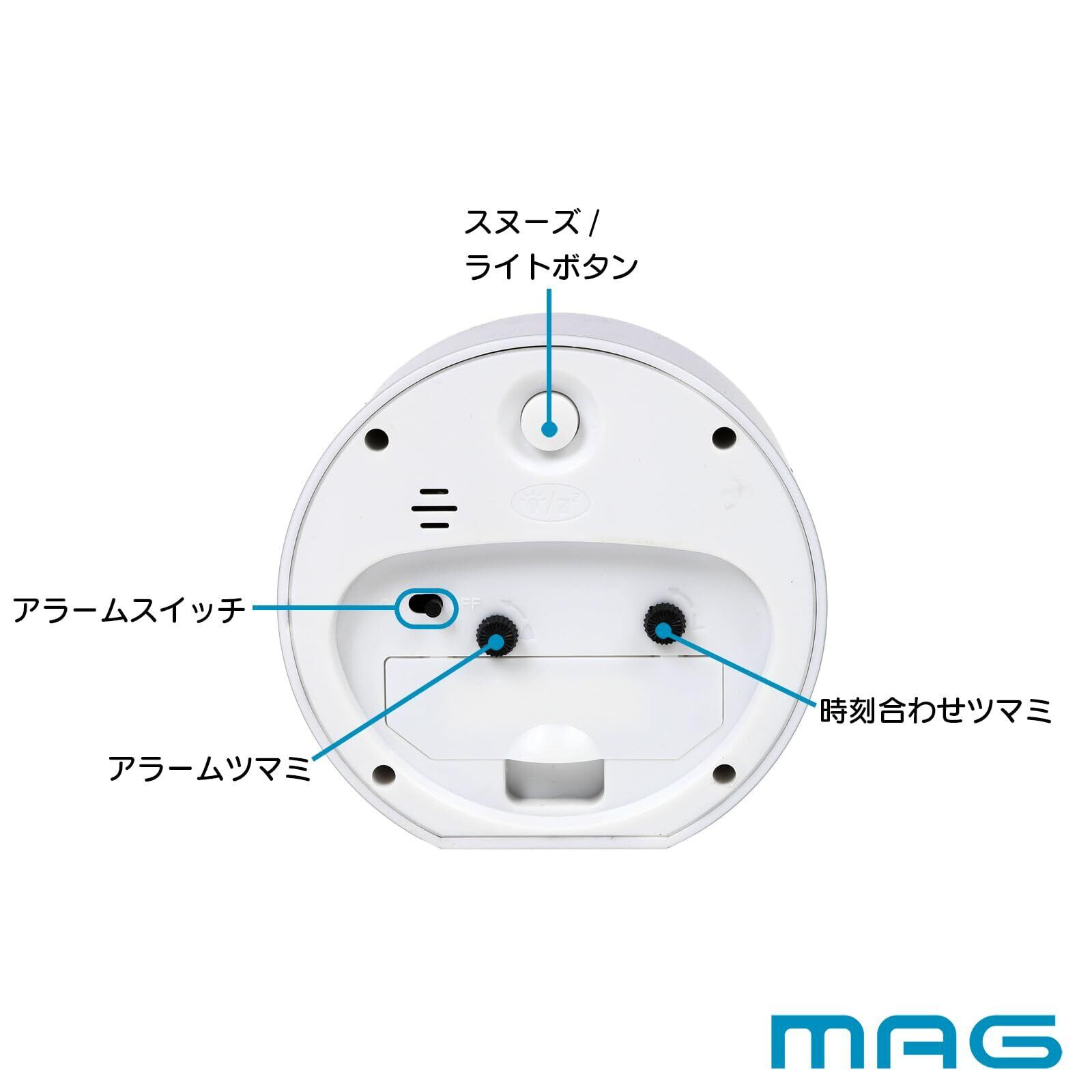 MAG(マグ) 目覚まし時計 置き時計 小型 アナログ かわいい おしゃれ インテリア 静音 連続秒針 電子音 アラーム スヌーズ ライト ホワイト ルント T-640A WH-Z ノア精密