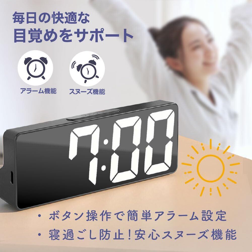 【新春セール】PENGUINFLY 置き時計 デジタル 目覚まし時計 置時計 おしゃれ 小型 静音 電池式 USB給電 卓上時計 コンパクト シンプル 光る (黒本体×白ライト)