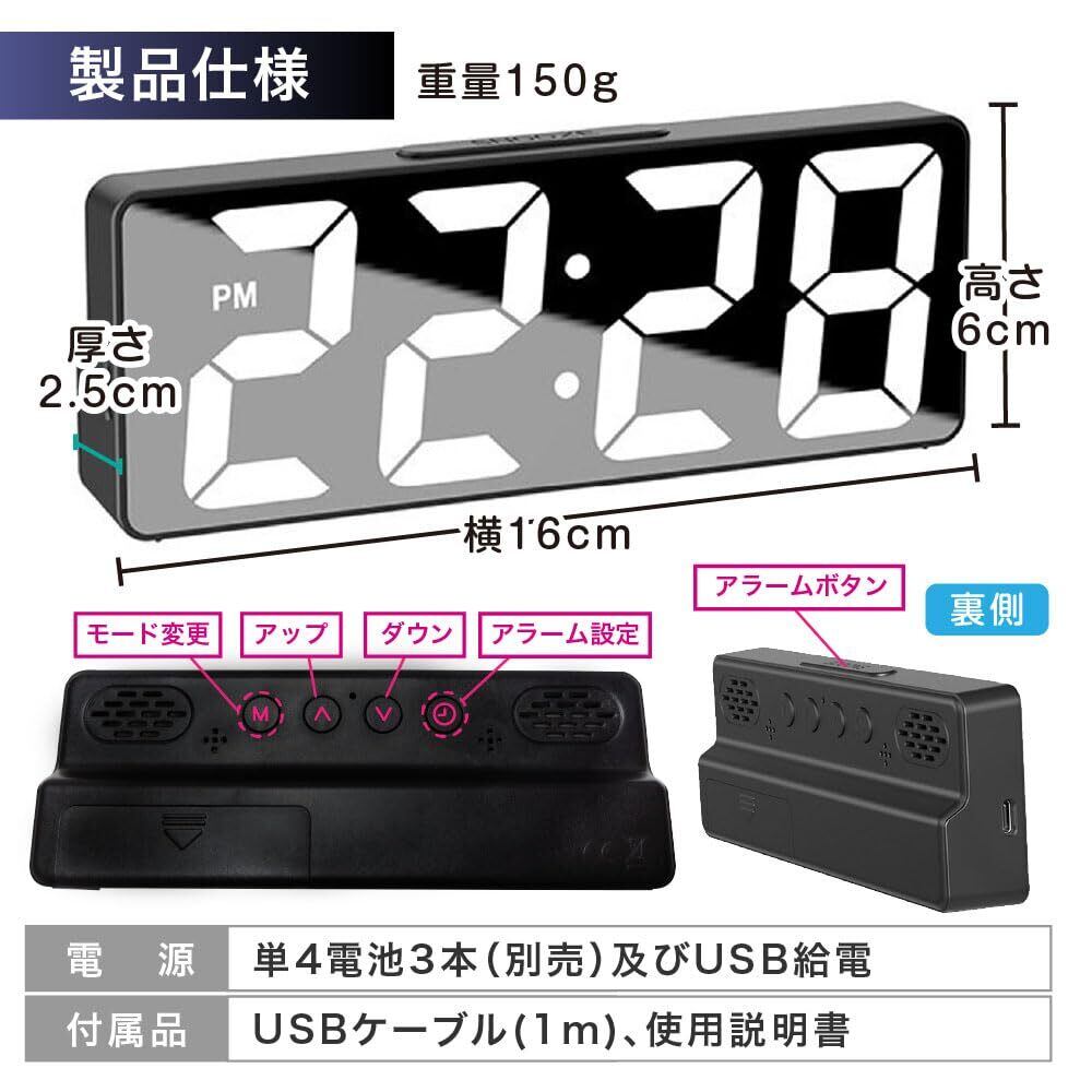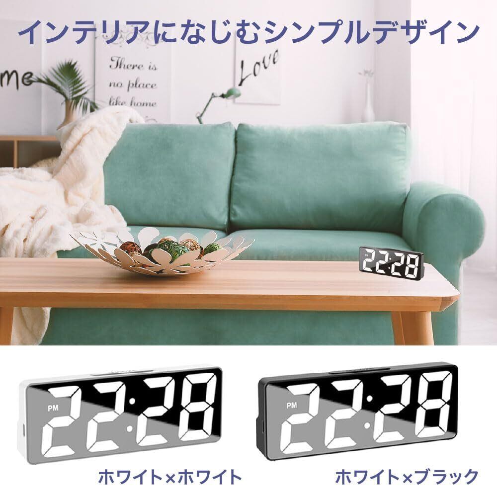 PENGUINFLY 置き時計 デジタル 目覚まし時計 置時計 おしゃれ 小型 静音 電池式 USB給電 卓上時計 コンパクト シンプル 光る (黒本体×白ライト)