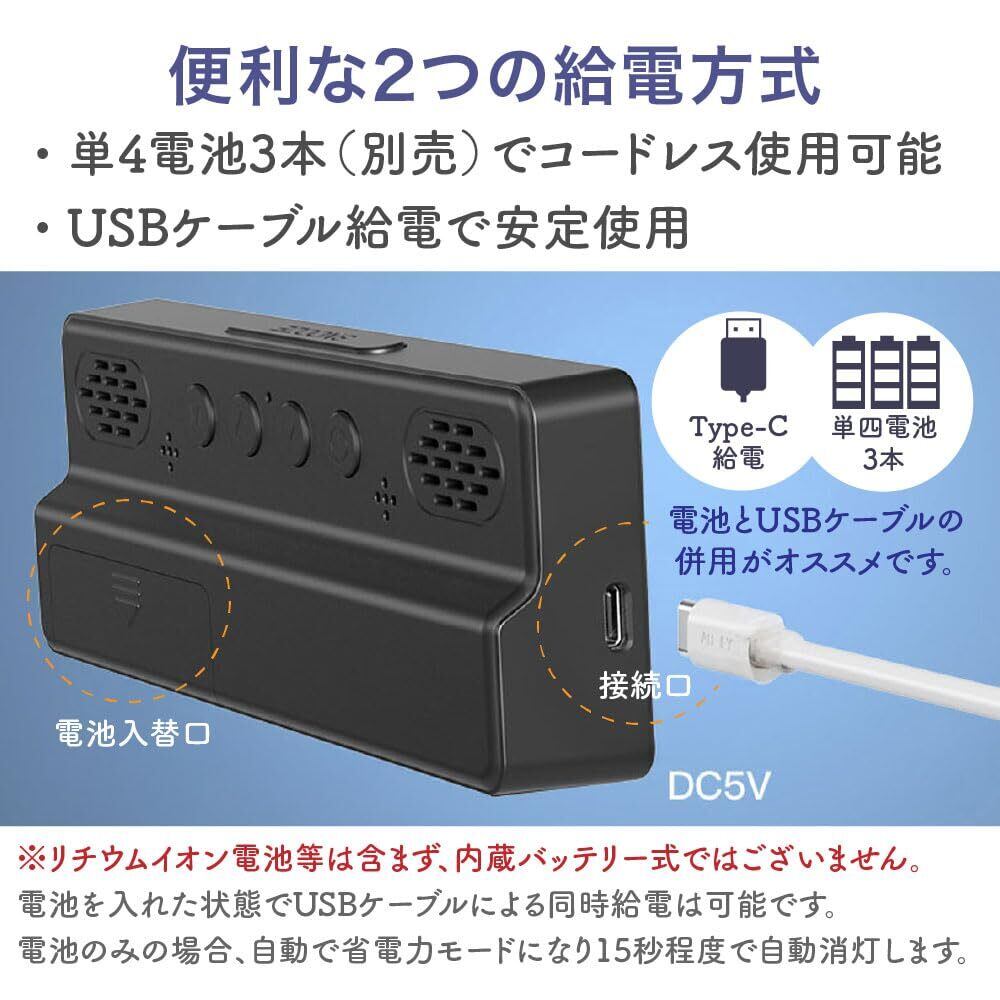 電源 USBケーブル給電(Type-C)及び単4電池3本