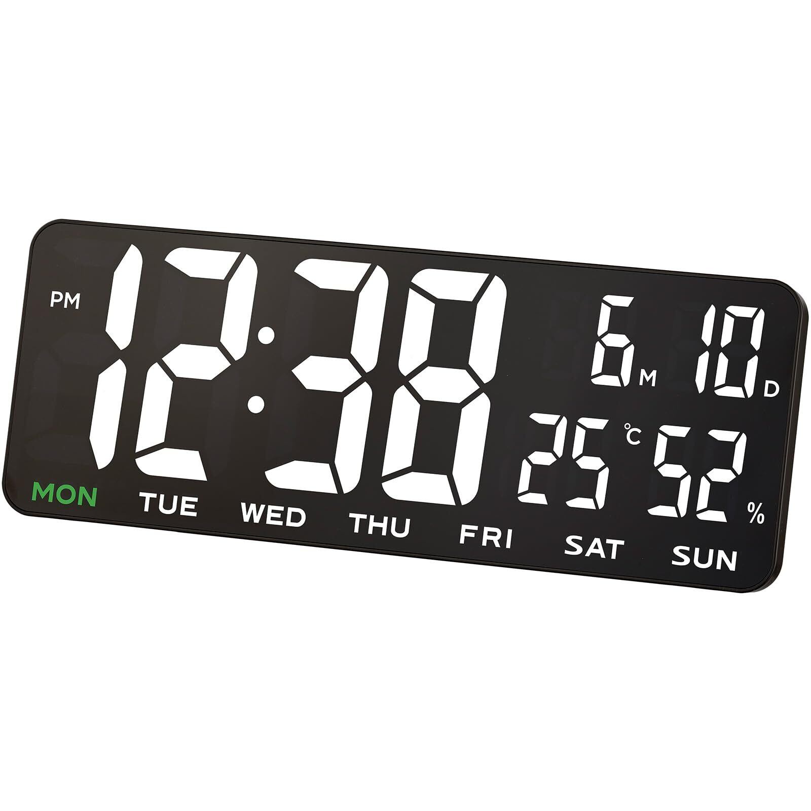 MAG(マグ) 掛け時計 置き時計 おしゃれ インテリア LED USB電源 温度計 湿度計 温湿度計 カレンダー 夜間自動減光 縦約13×横約35㎝ ブラック ホワイトアワー W-813A BK ノア精密