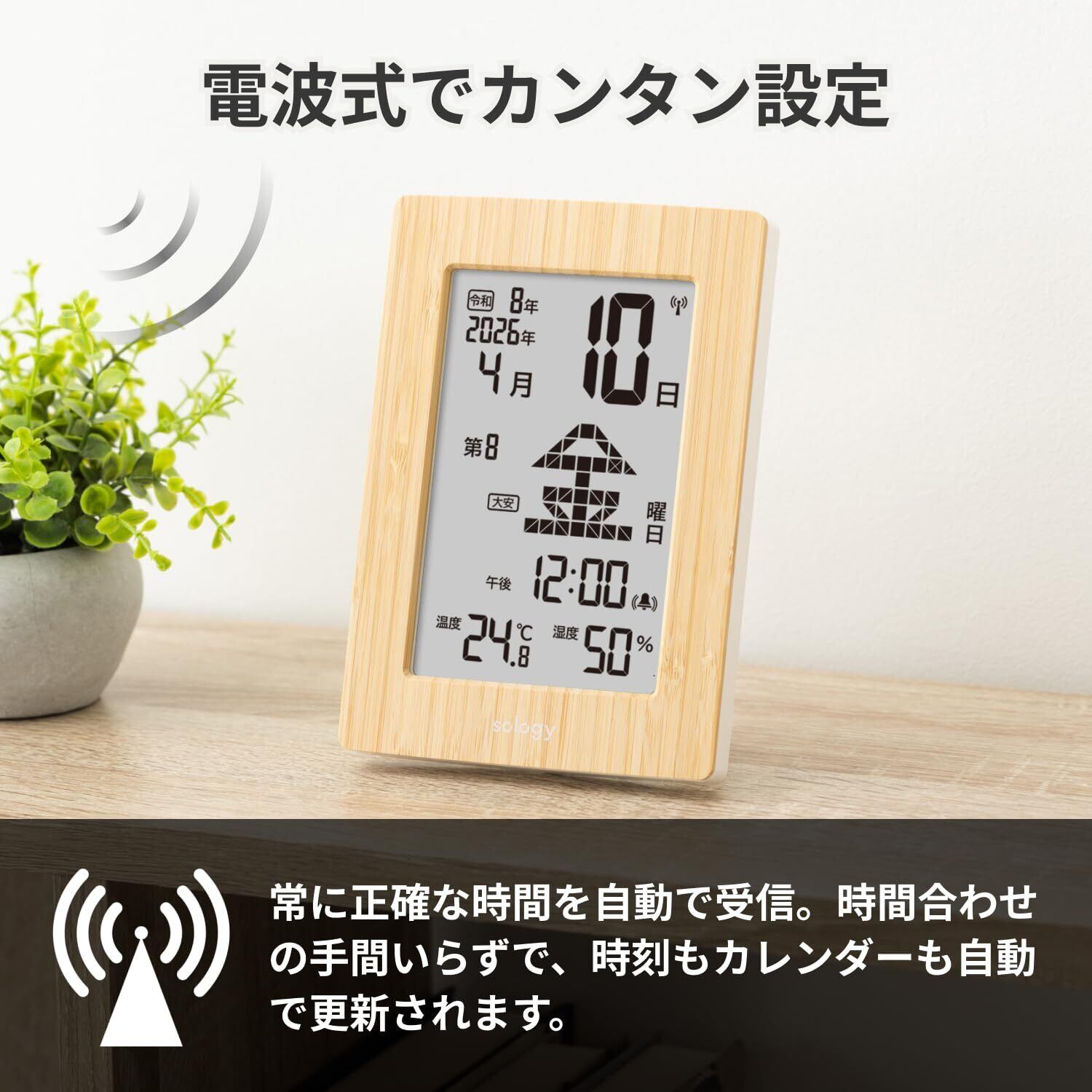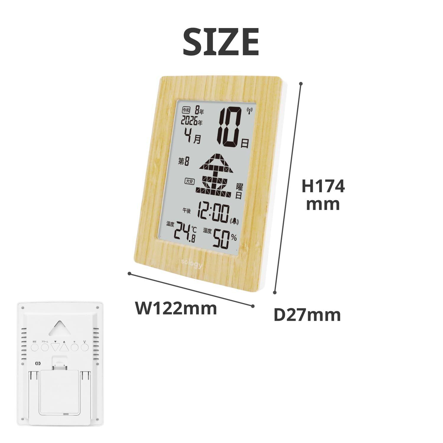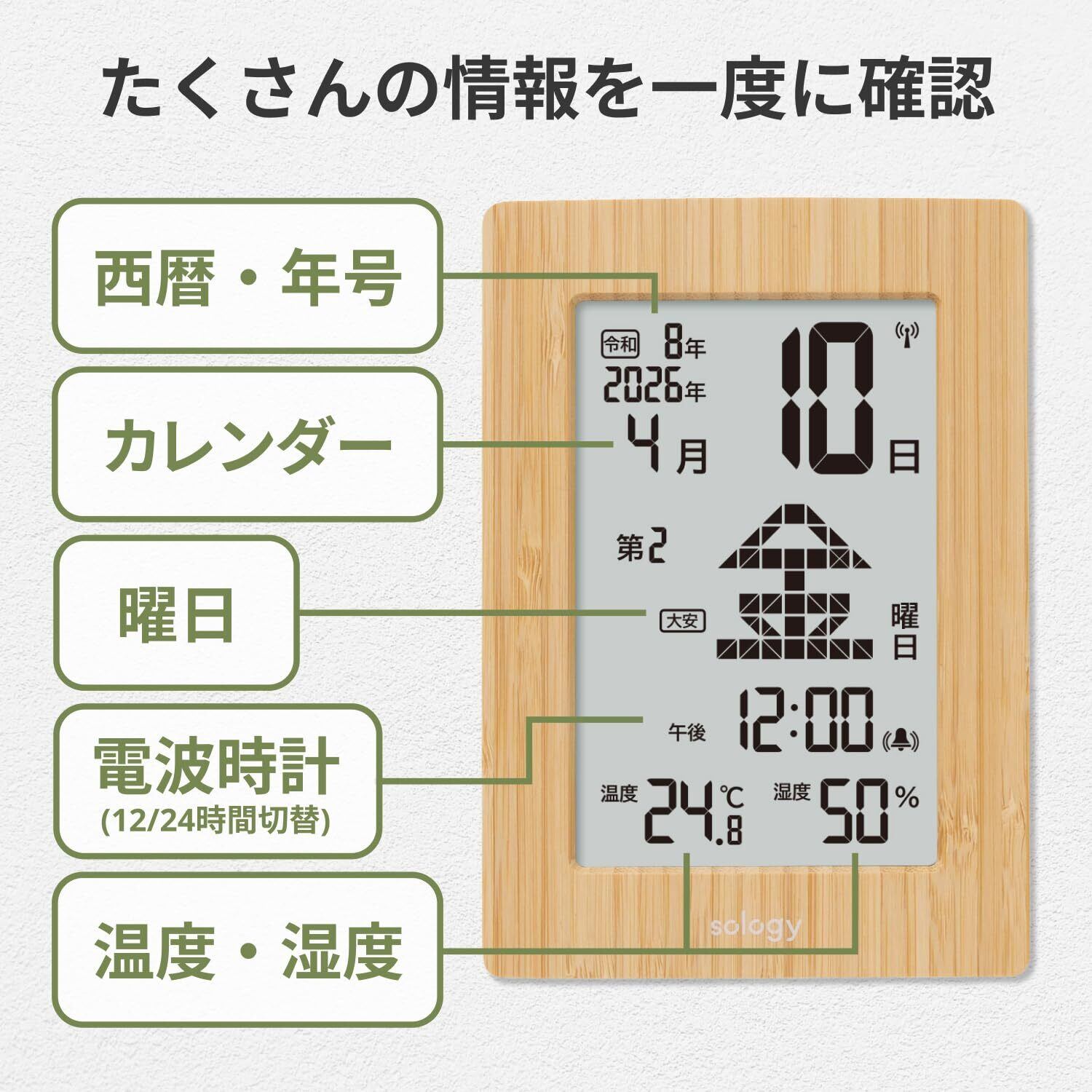 sology(ソロジー) 竹 日めくりカレンダー 電波時計 温度 湿度 カレンダー 時計 アラーム付き 西暦 年号 大画面 デジタル 置き時計 掛け時計 壁掛け リビング 和室 洋室