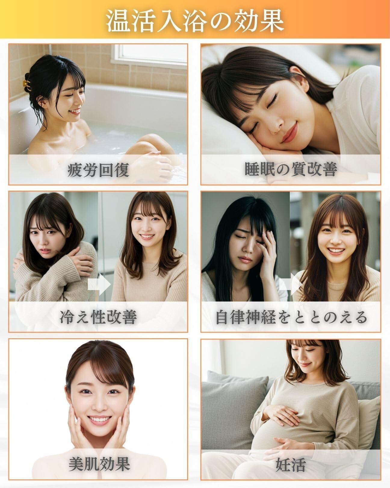 ️【自律神経を整える】温活入浴で体を心から温め、心と体を深いリラックス状態にすることで自律神経のバランスを整える効果が期待されます。