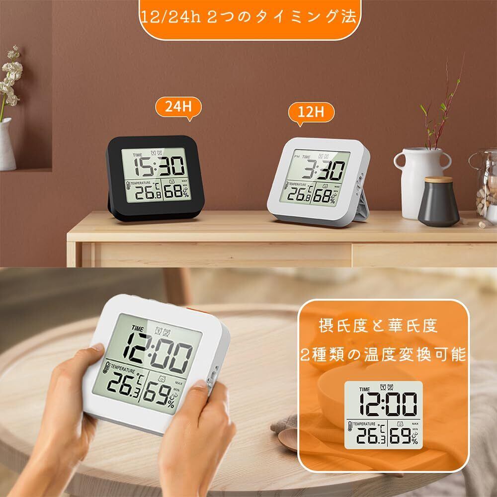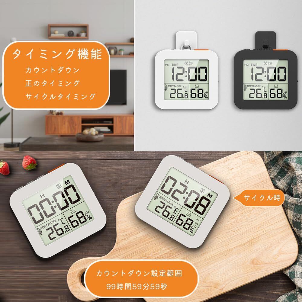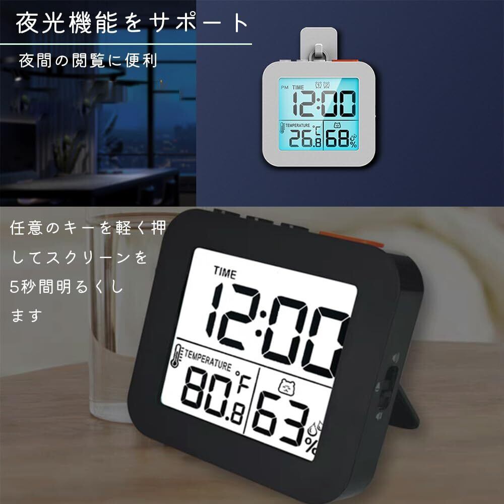 【見やすいLCDディスプレイ】:デジタル時計は、現在時刻・室内温度・湿度を同時に表示します。大きくはっきりとした画面で、浴室やキッチン、洗面所でも簡単に読み取れます。
