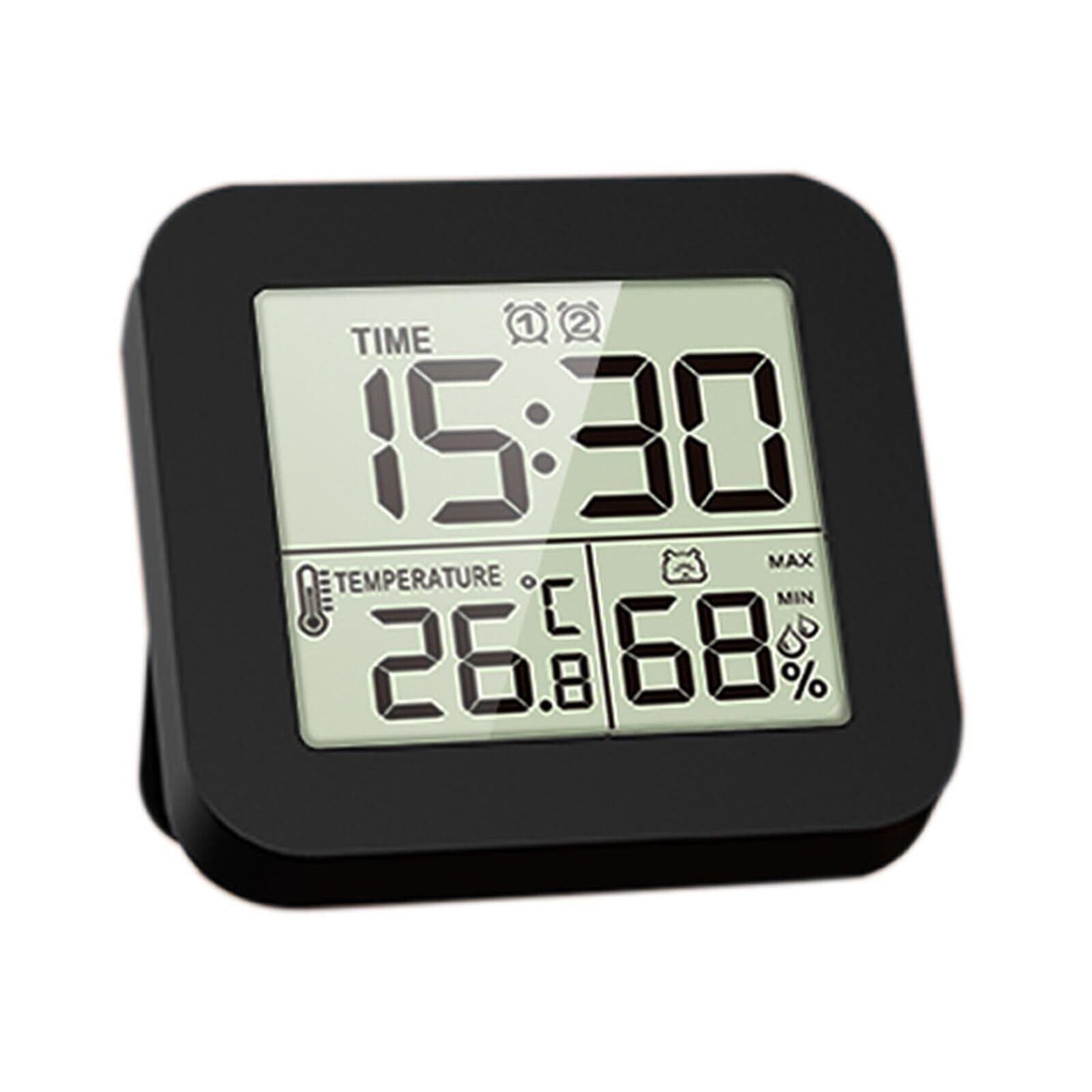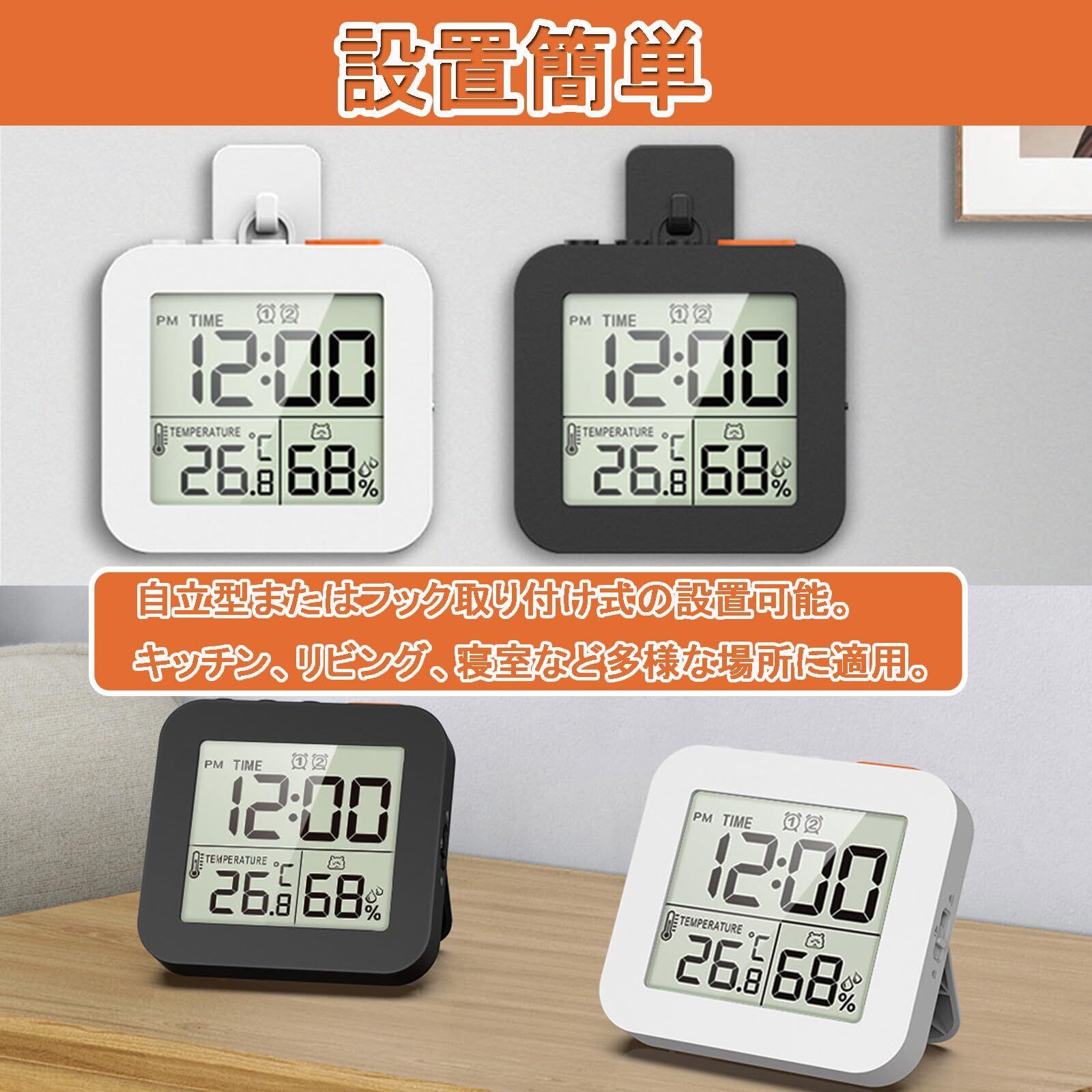 時計 防水防滴型デジタル時計 LCDディスプレイ タイマー 温湿度計 壁掛け デジタル 卓上置き 浴室/洗面所/部屋/台所/中庭/シャワー用 (ブラック)