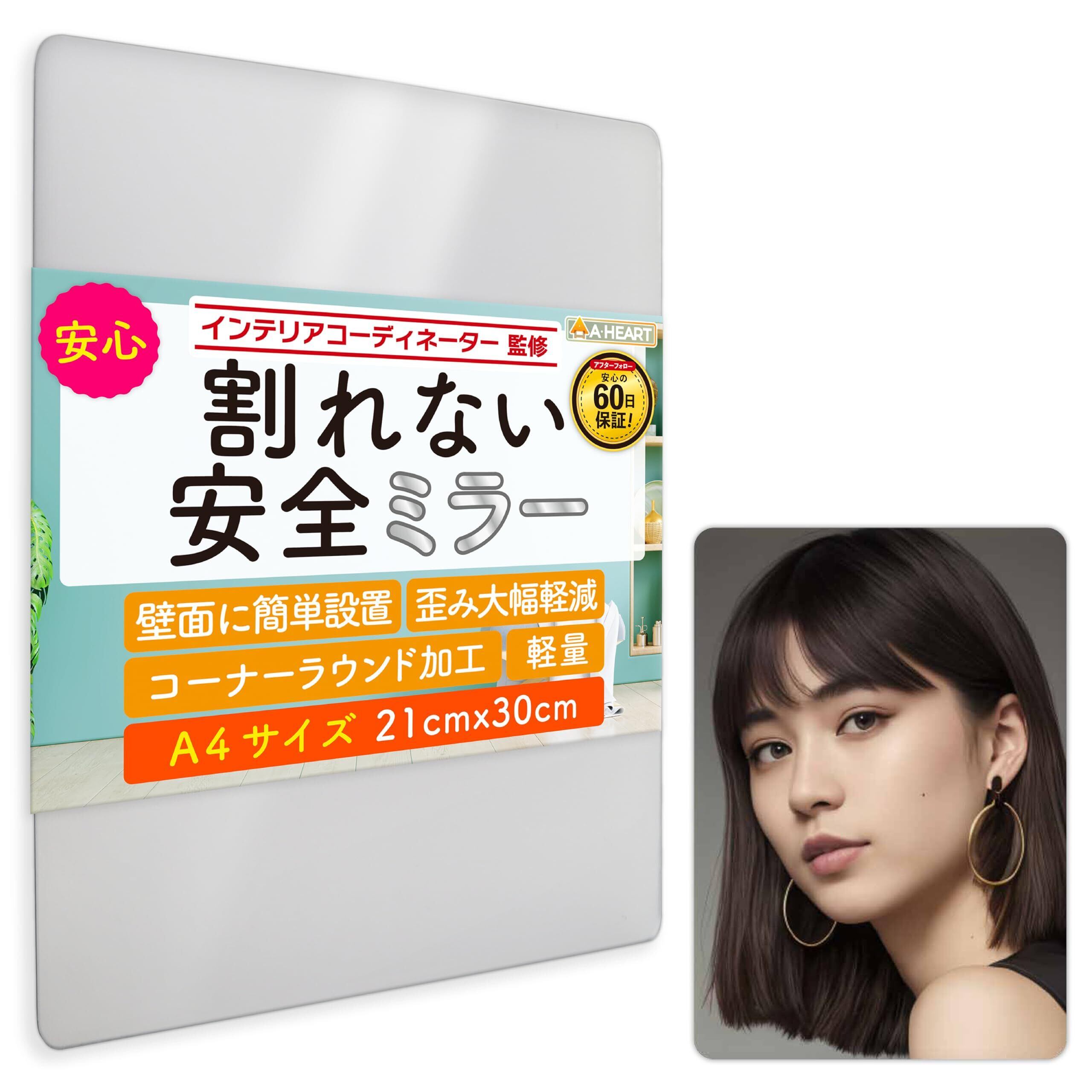 【ココミラーcocomirror基本仕様】縦30cm×横21cmコーナーラウンド。軽量(1枚当たり約140g)のアクリル製で割れにくいため、落下しても飛散することがありません。一枚で髪型チェック、複数で縦に並べれば上半身用の服装チェックとして使用できます。また、角を丸くカットしているためキッズ・赤ちゃんスペースで使用もできます。AHEARTのミラーは2人の専門家が監修した、理想のどこでも貼れる割れないミラーです。