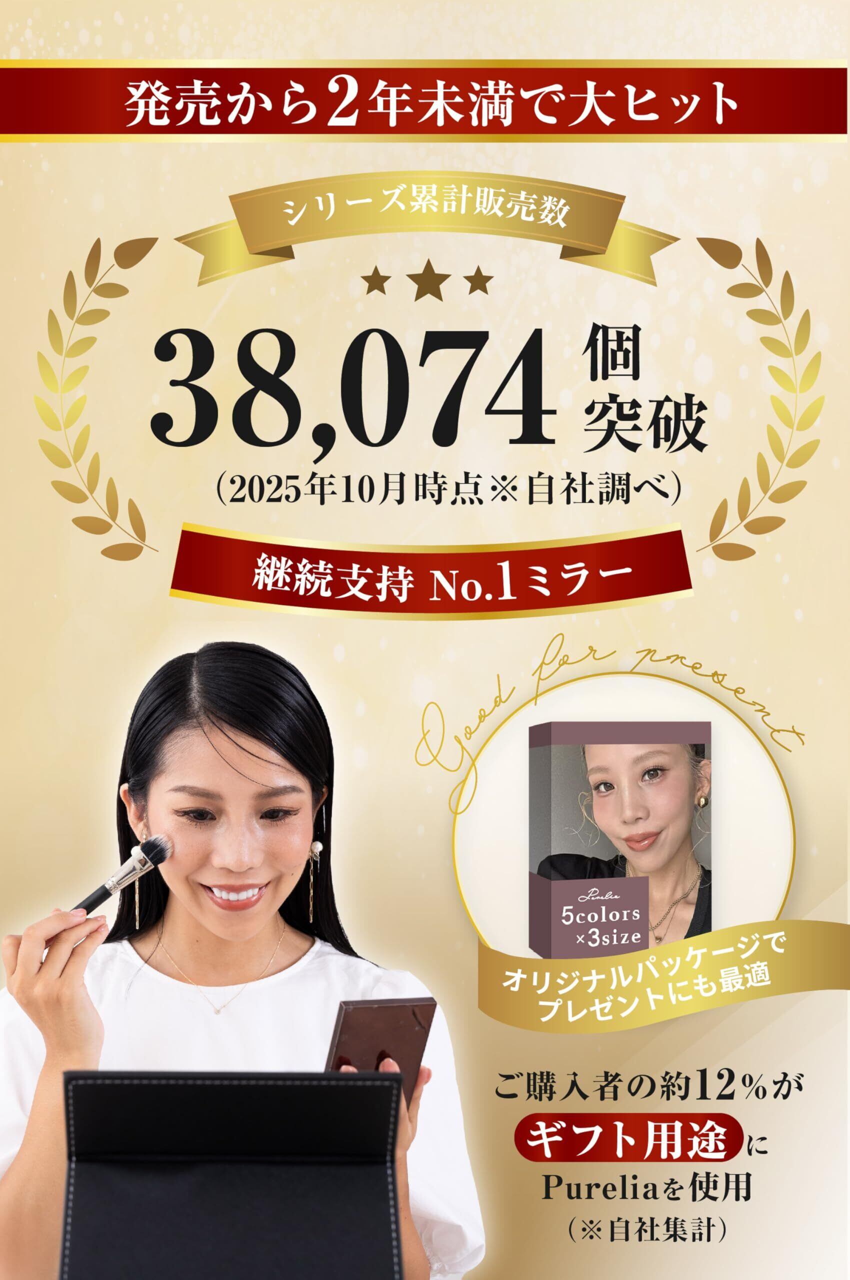 PURELIAの卓上ミラーは、上質感のあるPVCレザーと、毎日使いやすいシンプル設計にこだわった折りたたみ式の化粧鏡です。 オフィスでのメイク直し、学校、旅行、自宅でのスキンケアまで、さまざまなシーンで使いやすい卓上鏡として設計しました。メイクアップアーティスト監修のもと、見やすさ・使いやすさ・持ち運びやすさのバランスを整えています。 高級感のあるPVCレザー素材 見た目に安っぽさを感じにくい、落ち着いた印象のPVCレザーを採用。大人っぽいカラー展開で、持ち歩き用としても自宅用としても使いやすいメイクミラーです。汚れが気になったときも拭き取りやすく、清潔な状態を保ちやすいのも特長です。 折りたたみ式で、持ち運びやすく清潔を保ちやすい 使わないときは折りたたんで収納できるため、鏡面をホコリや汚れから守りやすい設計です。バッグやポーチにも入れやすく、外出先でも使いやすい卓上ミラー。必要なときにさっと開いて使えるので、日常使いにも便利です。 角度調整できる自立式で見やすい位置に合わせやすい 無段階で角度調整ができるため、座ったままでも立ったままでも使いやすい角度に合わせやすい化粧鏡です。縁なしで鏡面が広く見えやすく、顔全体を確認しやすいので、毎日のメイクにも便利です。自立式なので両手が使いやすく、落ち着いてメイクしやすい仕様です。 大きめなのに軽量で、使う場所を選びにくい 顔全体を確認しやすい見やすさがありながら、持ち運びしやすい軽量設計。オフィスでの化粧直し、学校、旅行、出張、自宅のデスクなど、場所を選ばず使いやすい卓上鏡です。LEDや拡大鏡がないシンプル設計だからこそ、余計な操作がなく、毎日気軽に使えます。 3サイズ×5カラーから選べる サイズは17×12cm、20×15cm、24×18cmの3種類。持ち歩き用、自宅用など、使い方に合わせて選べます。カラーはシルバー、ブラック、ネイビー、グレー、キャメルの5色展開。ライフスタイルや好みに合わせて、自分に合った1枚を選べる卓上ミラーです。